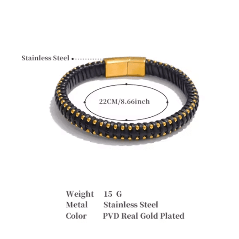 Simple Stainless Steel Gold Tone Bangle with Crystal Details (M345)G (Copy) £12.95 22cm Leather and Stainless Steel Rope Braided Bracelet in black and Gold (M387)