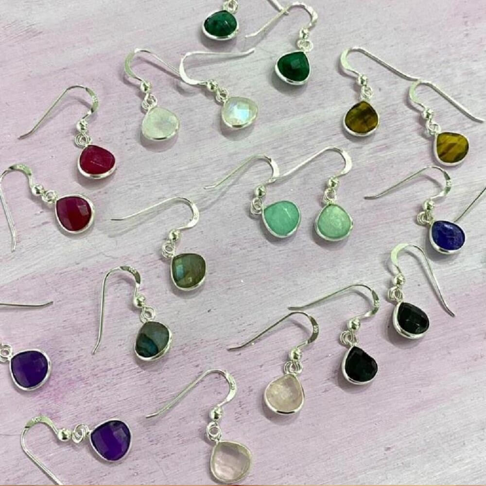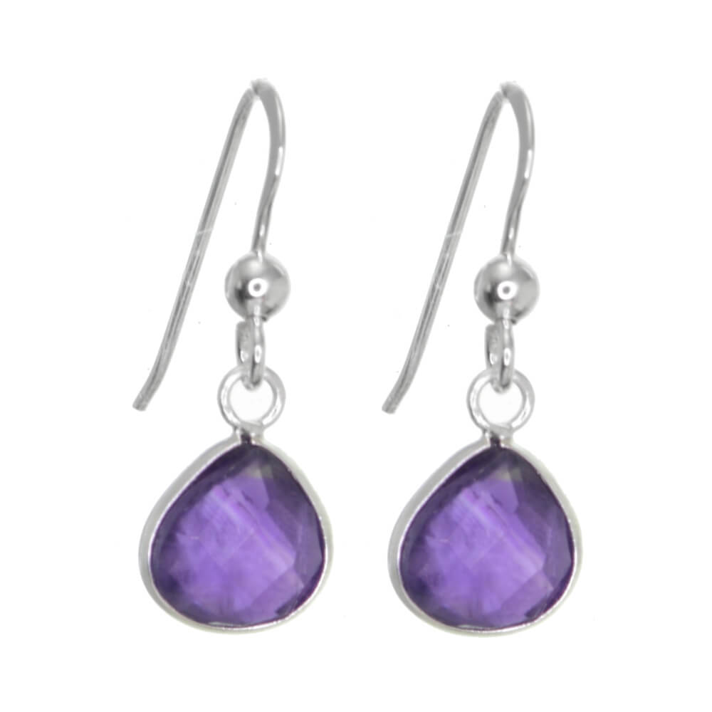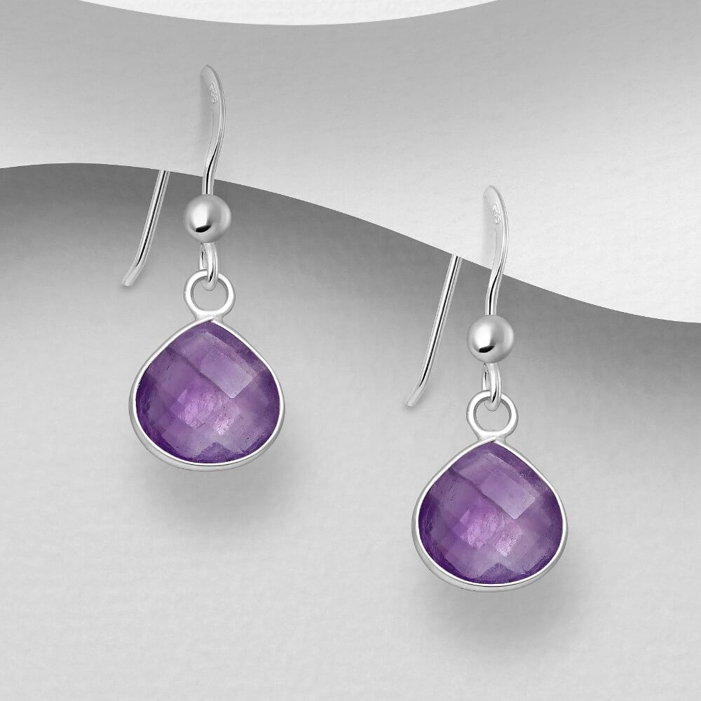 A beautiful pair of teadrop earrings with amethyst stones. In crystal healing, amethyst is believed to cure hangovers and is associated with sobriety!