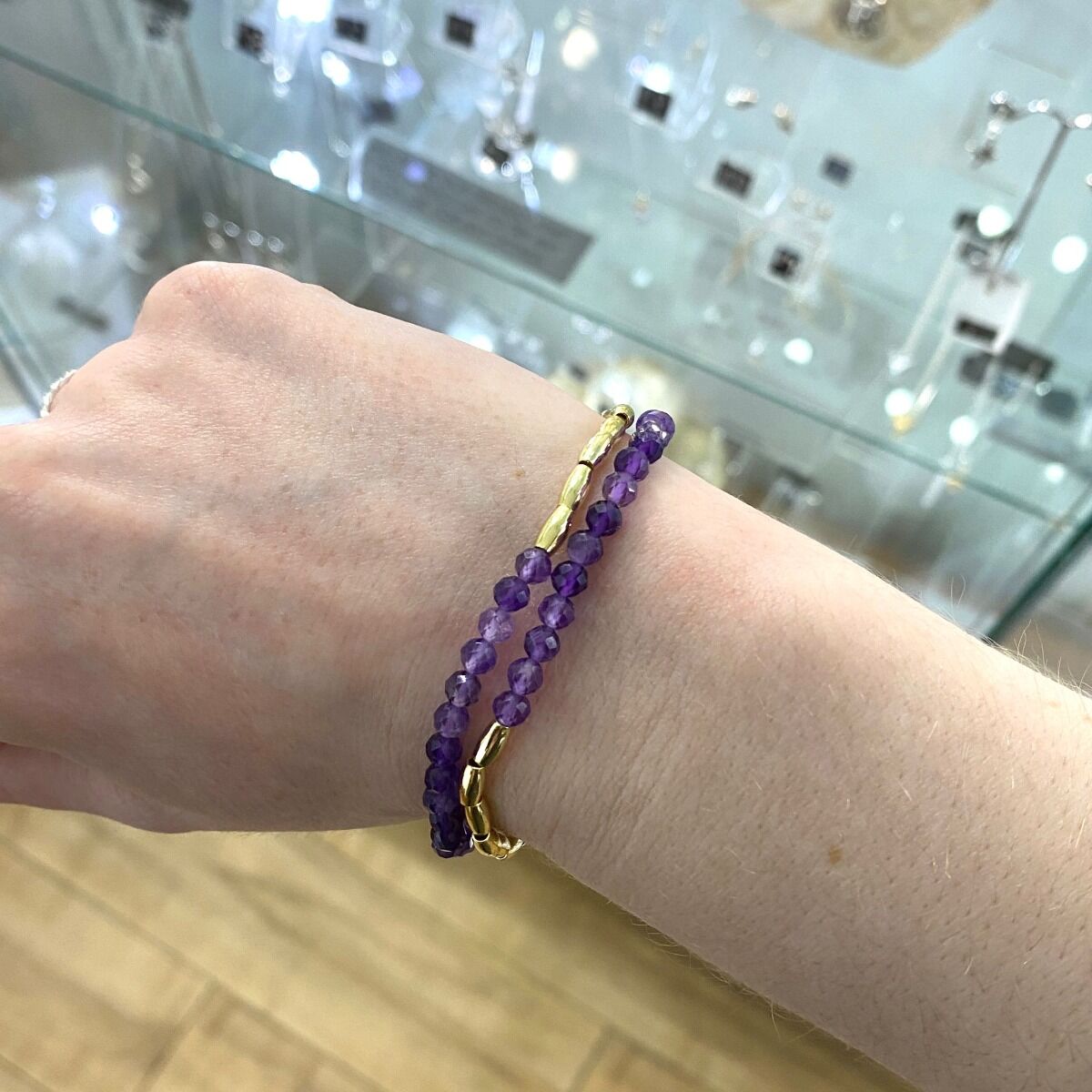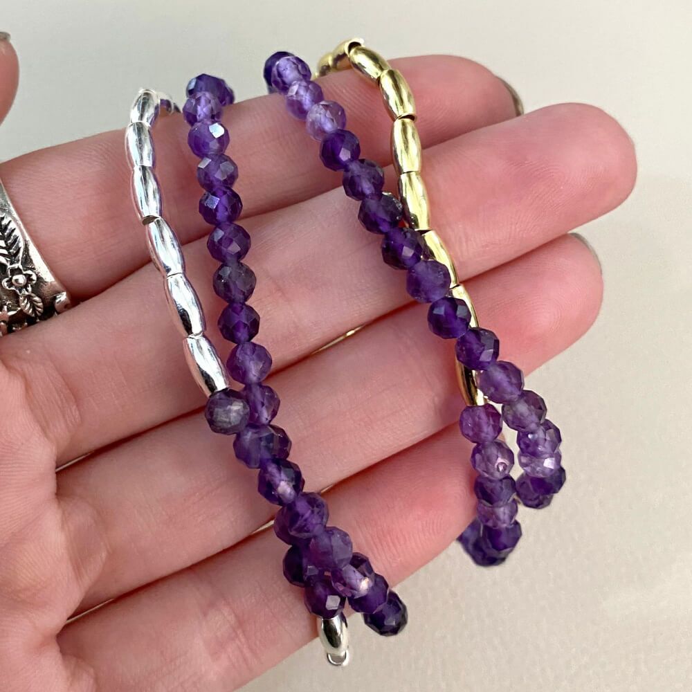 This fabulous bracelet is a twist on a classic pearl braxelet, featuring tube shaped silver beads just off centre of the design.