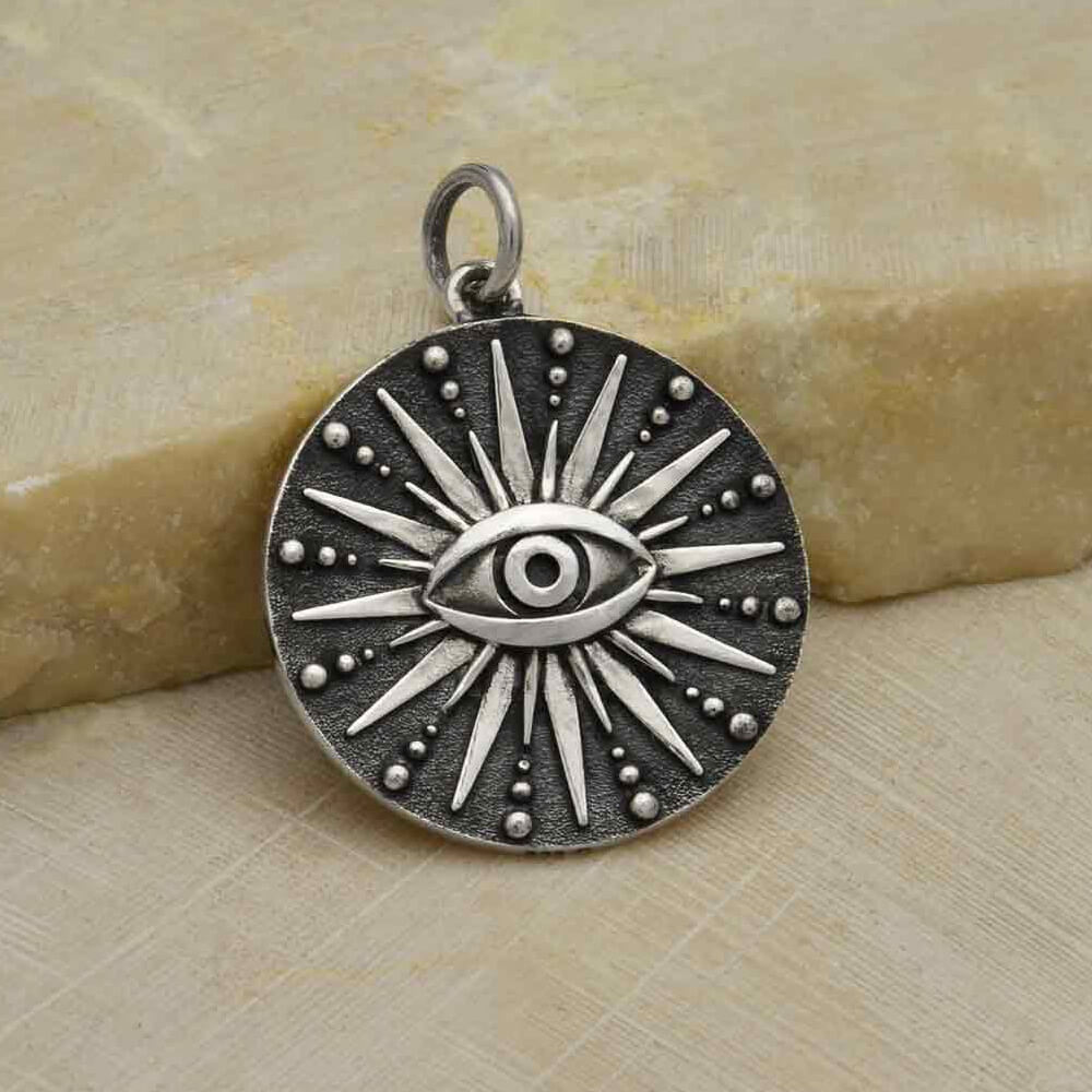 Be mesmerised by this sterling silver all seeing eye mandala charm. It can be worn as a protective talisman, as the all seeing eye represents clairvoyance, light, vigilance, moral conscience, truth, and justice.