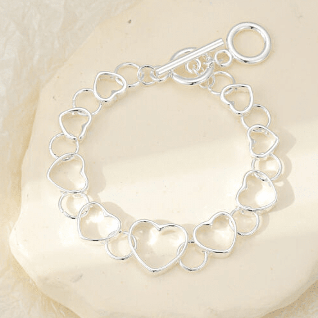 This is an elegant bracelet with a lovely heart motif running around the whole length.
