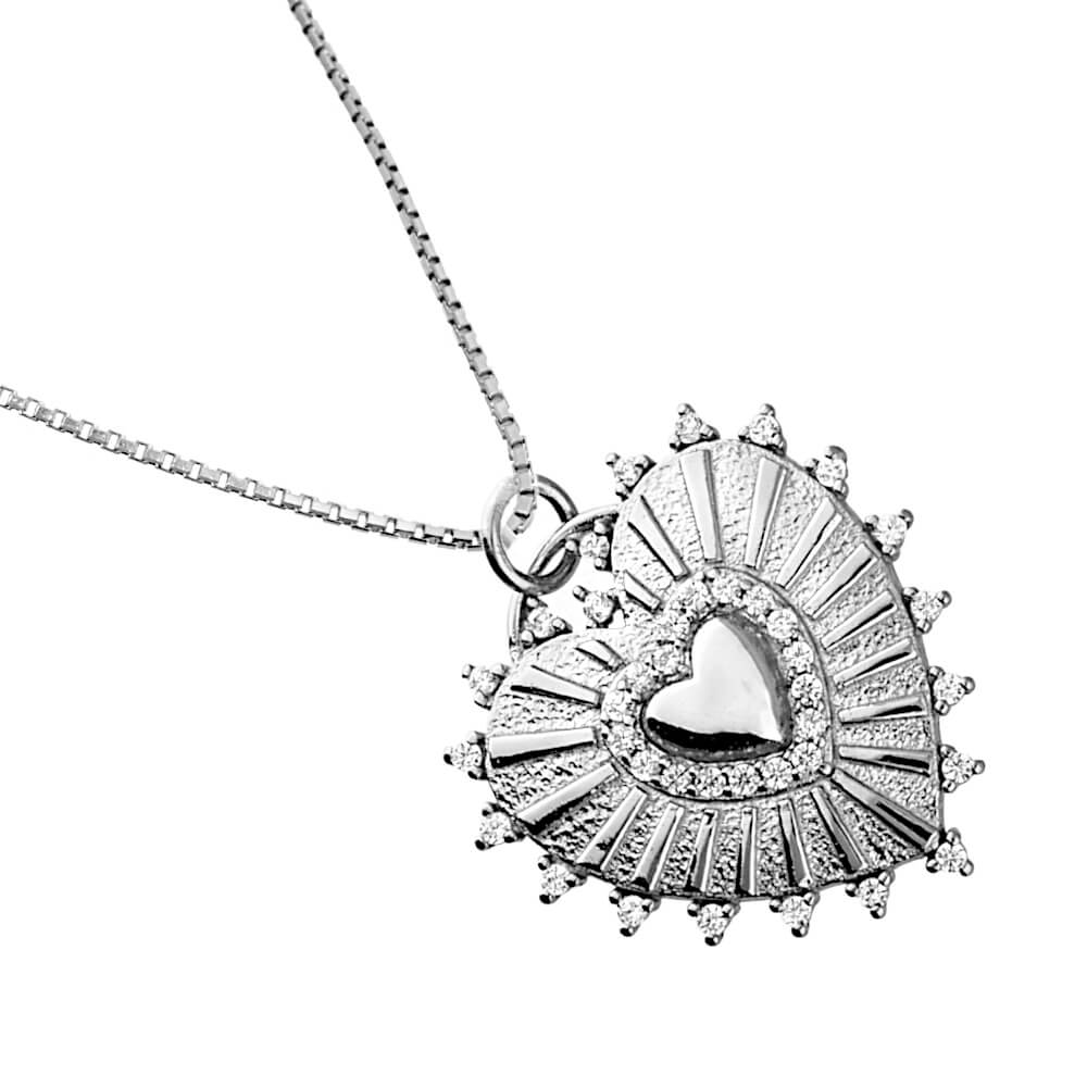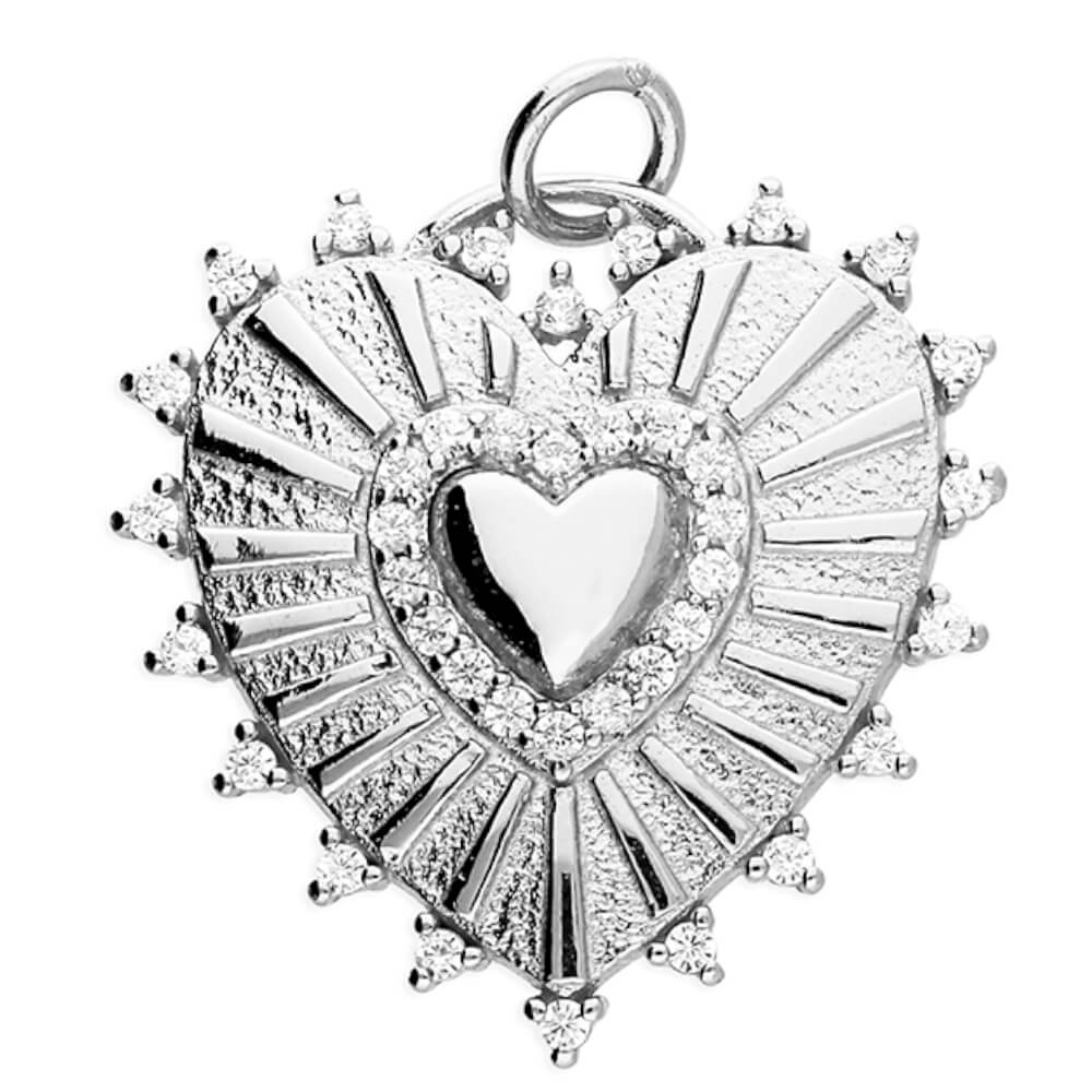 Beautiful Spiked cubic zirconia heart Pendant in Sterling Silver Pendant.