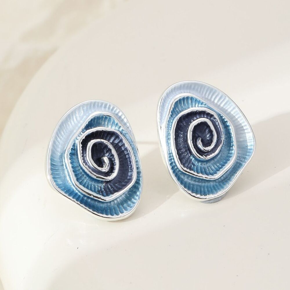A stunning pair of earrings with a striking spiralling design, that is almost like a rose.