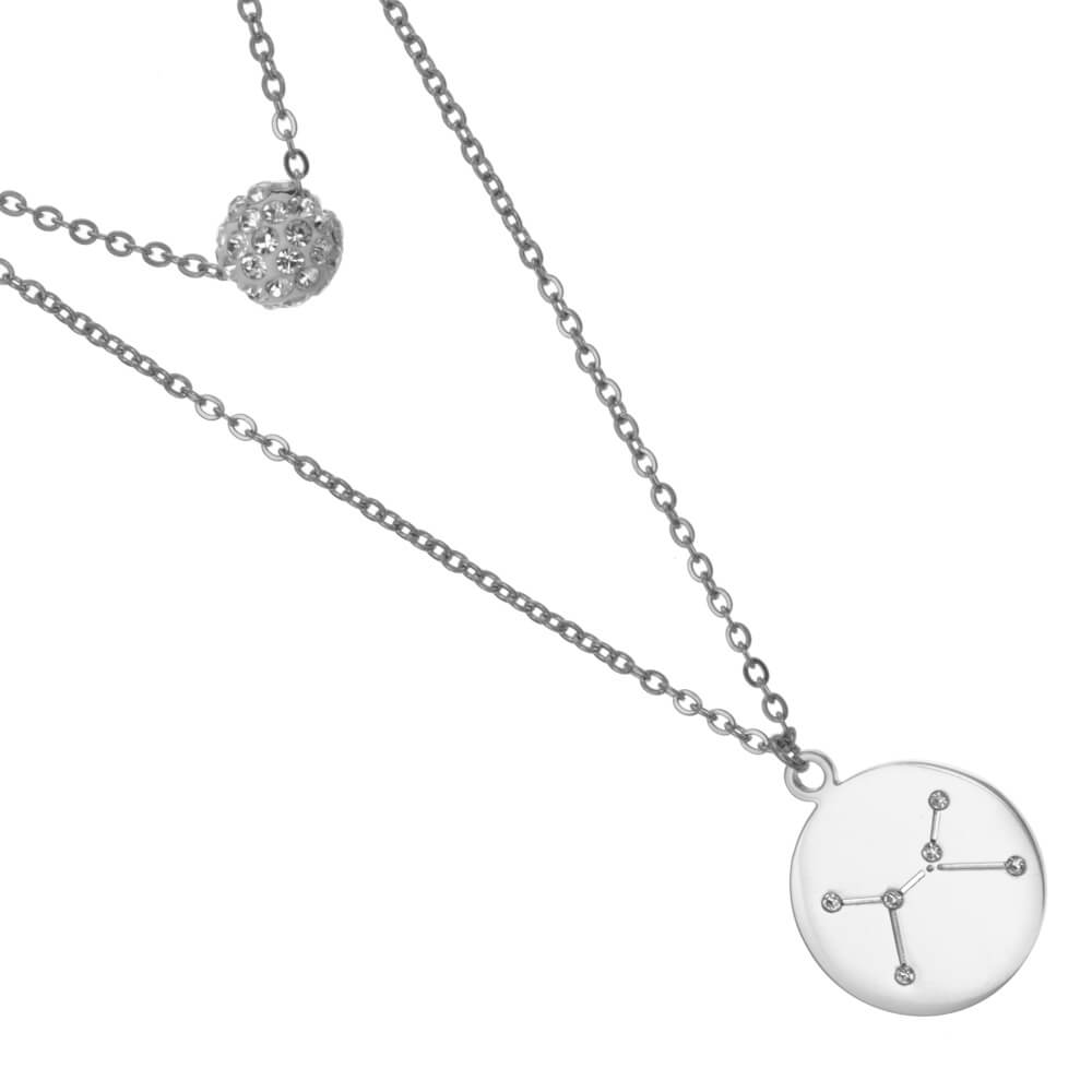 Cancer Zodiac Jewellery: Double Layered Chain Necklace with Crystal-Decorated Star sign Constellation Symbol (S36)