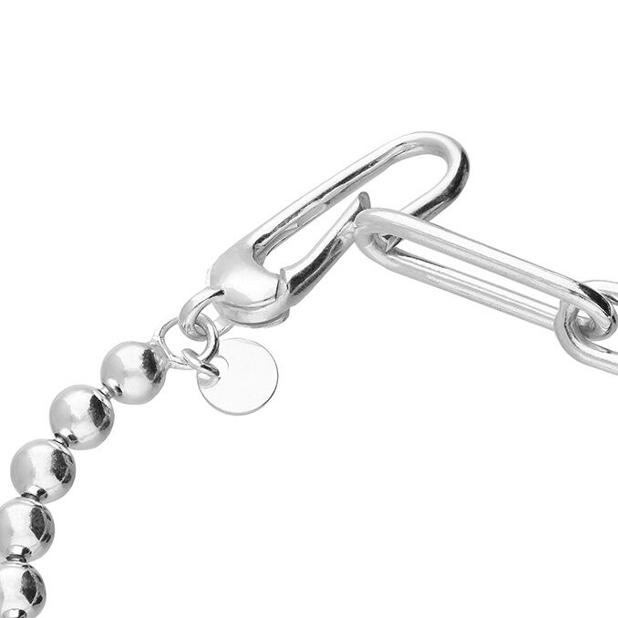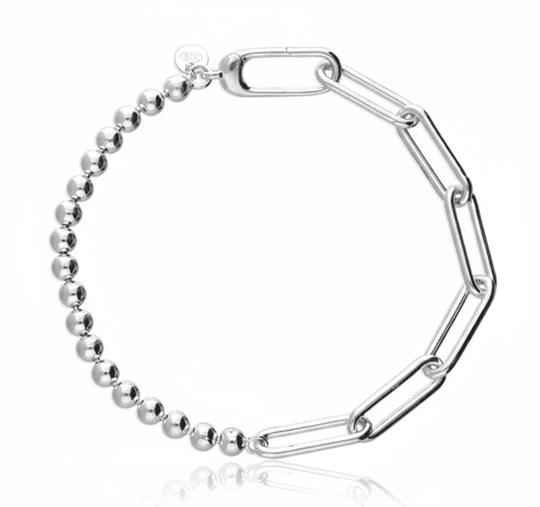 This striking and simple bracelet is perfect for wearing alone or layering up with other designs.The half beaded, half ‘paperclip’ link style is modern yet still timeless in appearance.