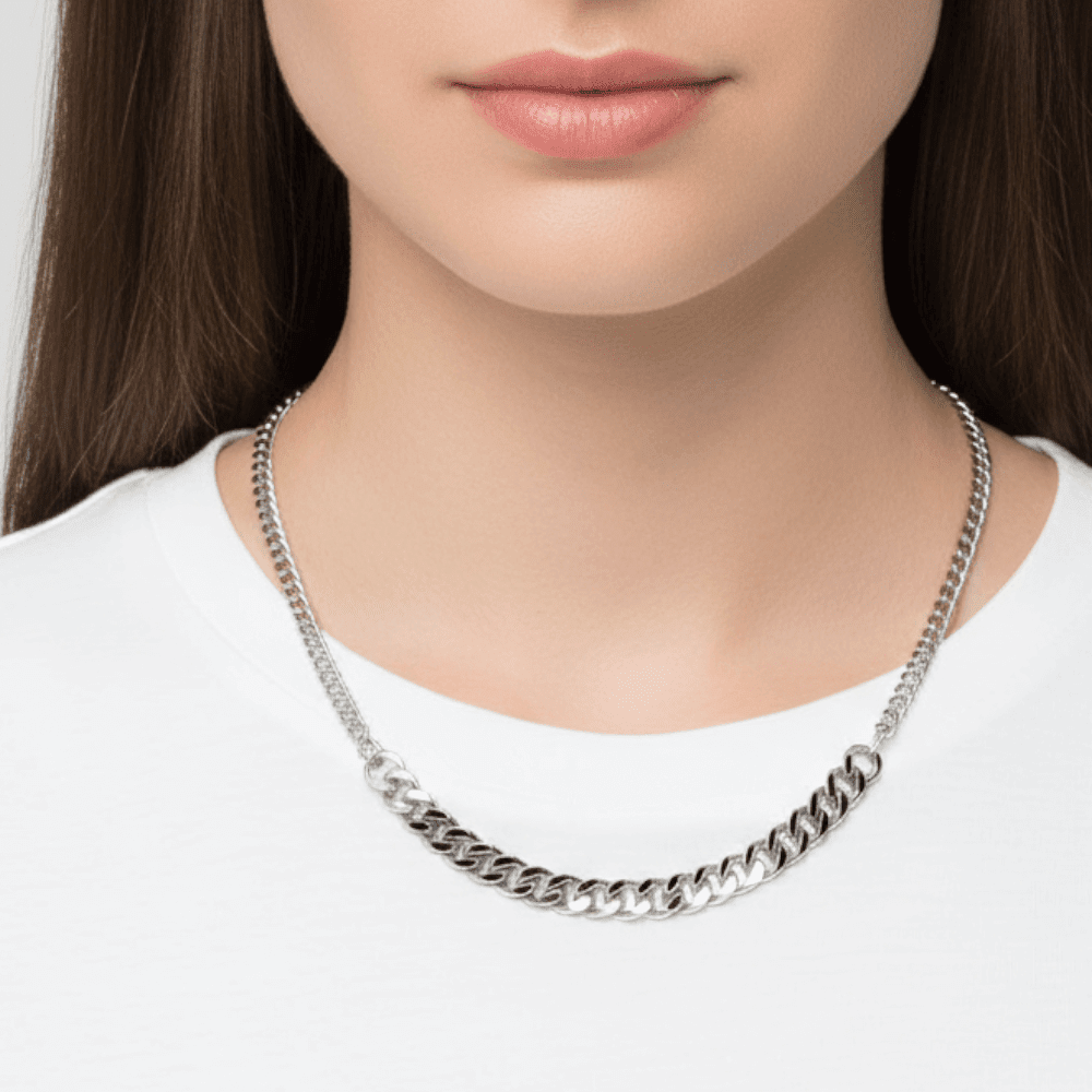 A simple and elegant chain link necklace with a chunkier chain centrepiece.