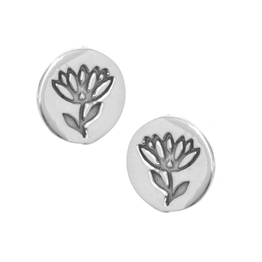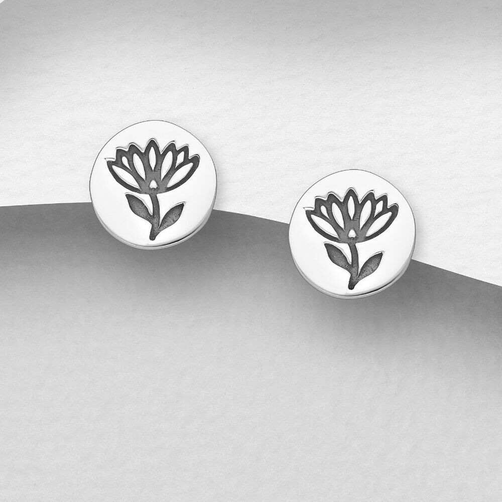 This cute little silver pair of earrings features an oxidised outline design in the shape of a profile of a flower.