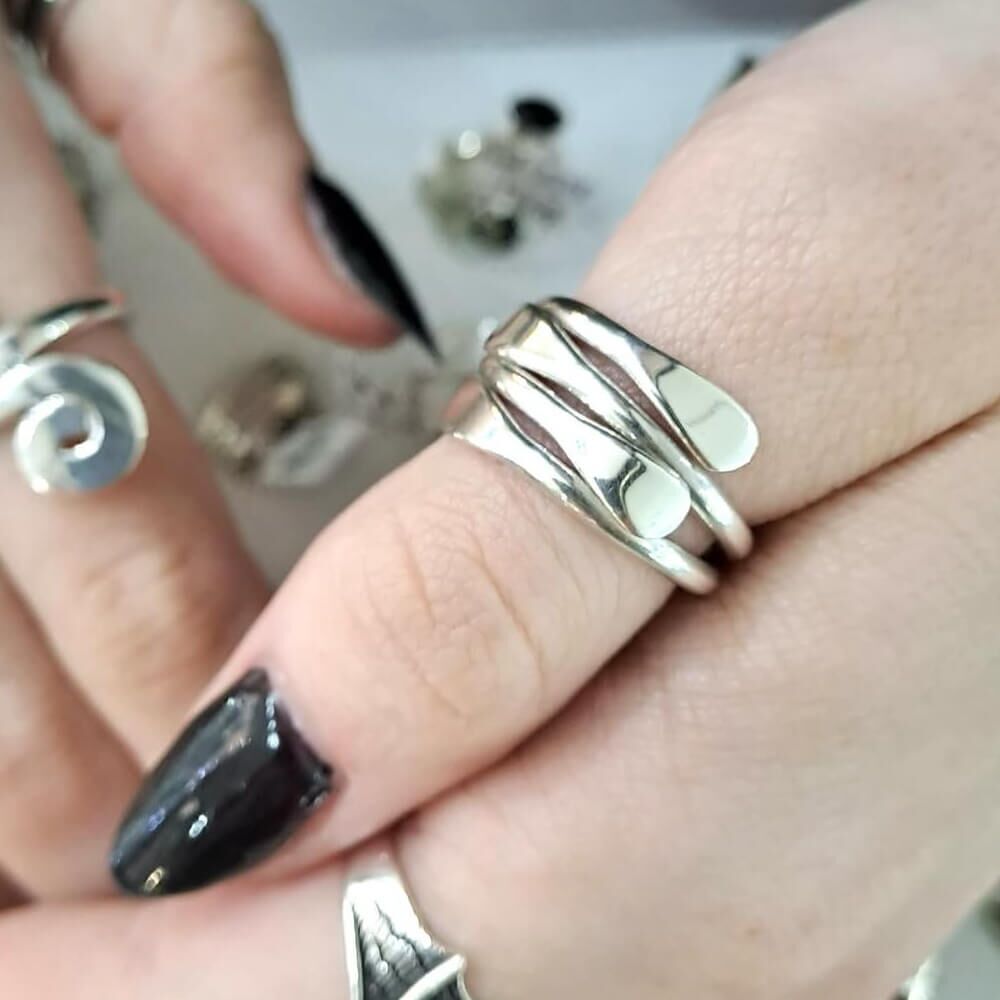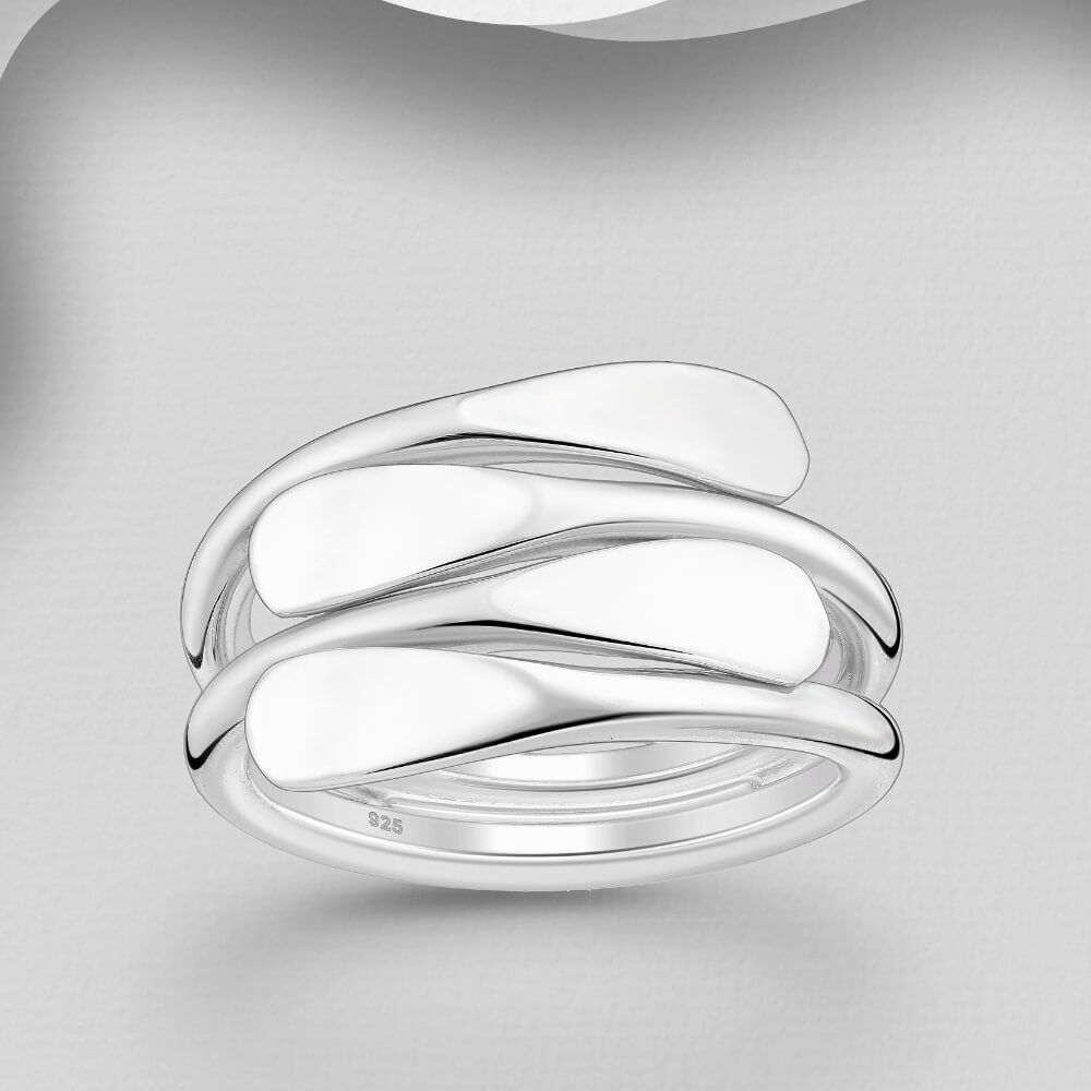 A beautiful ring with overlapping pieces that have flattened edges for an unusual contemporary look.
