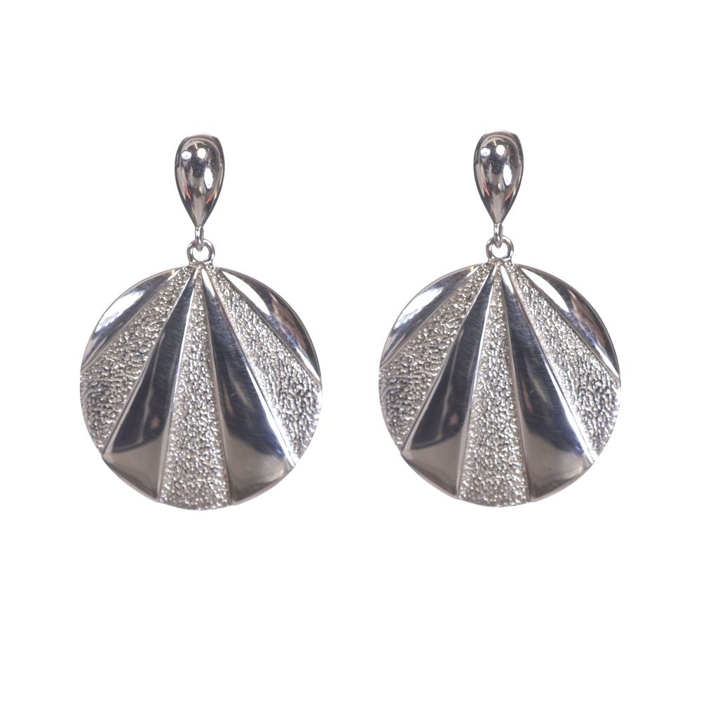 These round statement drops have stripes of alternating shiny and matt textures. Matching item available.