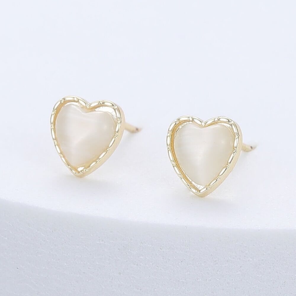 These pretty heart stud earrings have an unusual white lightly shimmery cntre that really catches the eye.