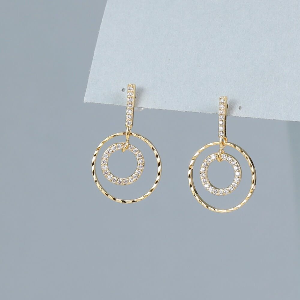 This beautiful pair of drop earrings have stud fastenings and a delicate design studded with tiny cz crystals.