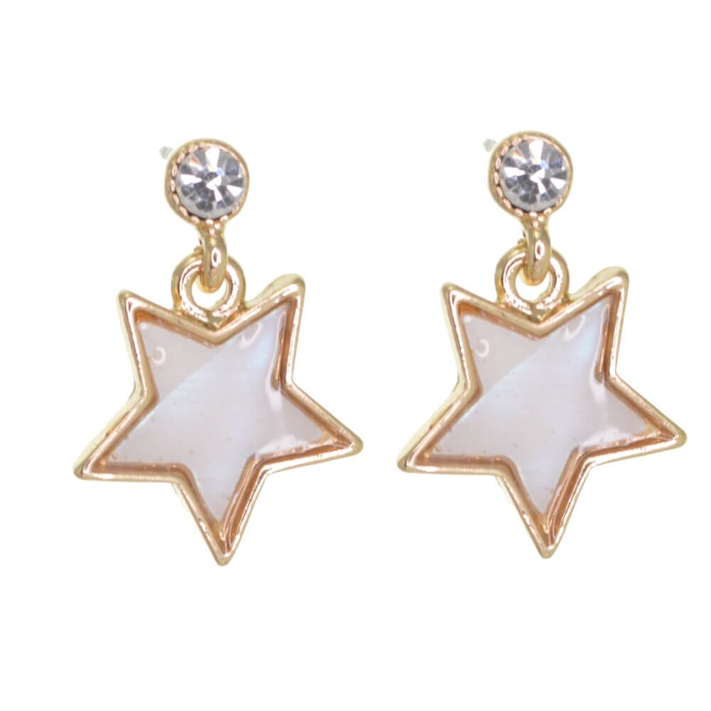A beautiful star design earrings with shell inlay and crystal stud detail.