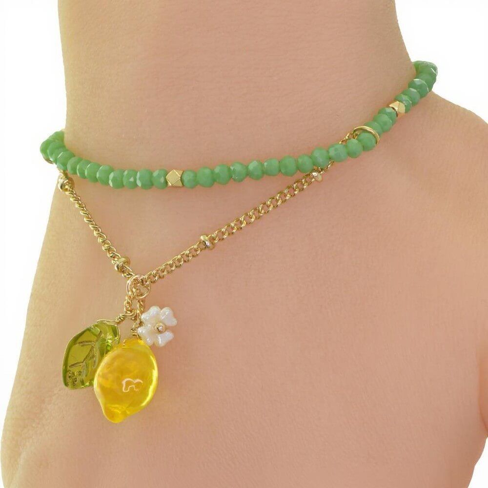A stunning beaded bracelet with fun colourful details and lively fruity charm bead.