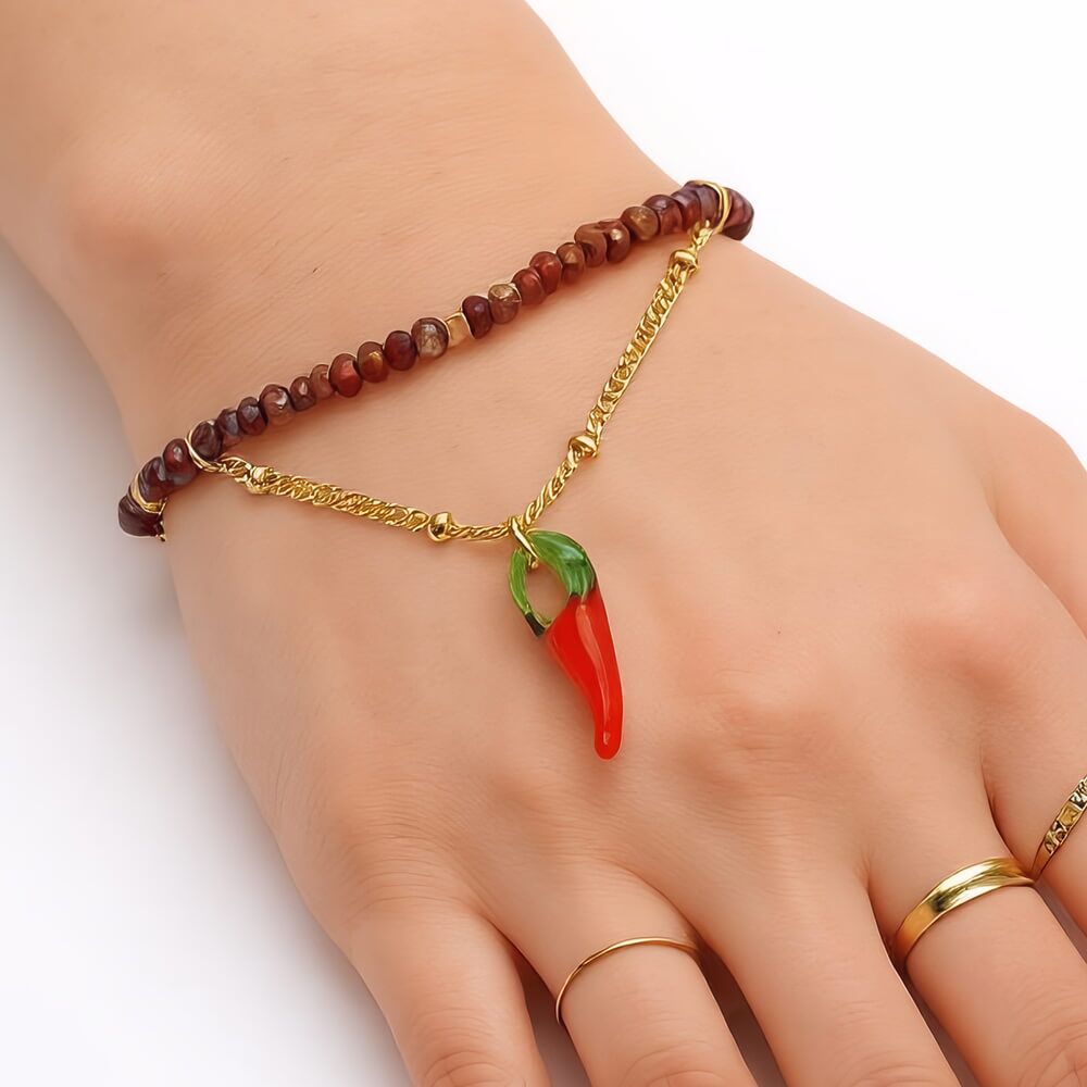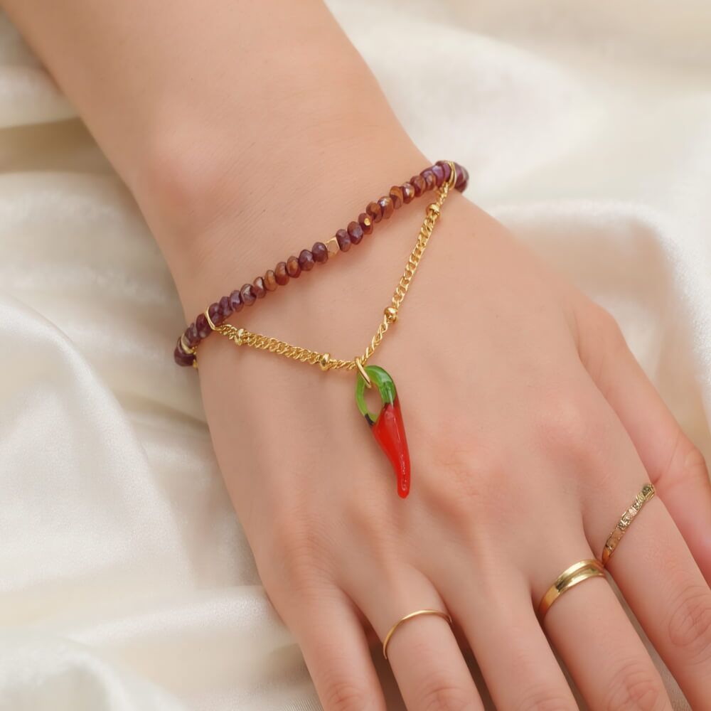 Be the first to review “Cute and Quirky Pink Beaded Bracelet with Gold Tone Elements and Chili Pepper Charm (M282)B)”