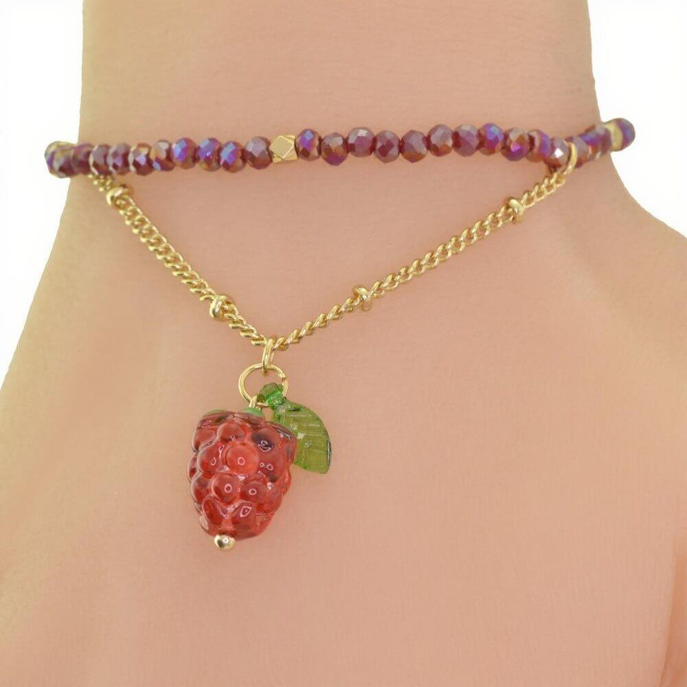 A stunning beaded bracelet with fun colourful details and lively fruity charm bead.