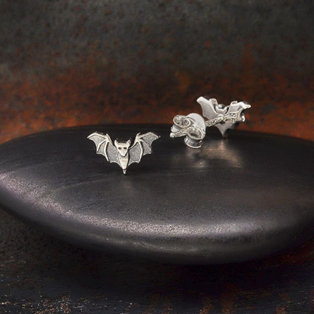 A cute gothic pair of stud earrings featuring everyones favourite creature of the night, the bat! Long associated with vampires and horror, the bat has been reclaimed in popular imagination as a cute furry friend.