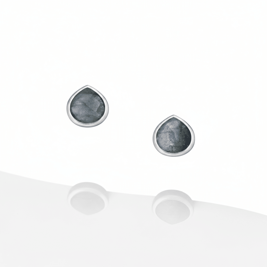 A beautiful pair of teardrop earrings with labradorite. The shimmery nature of this stone is known as chatoyance.