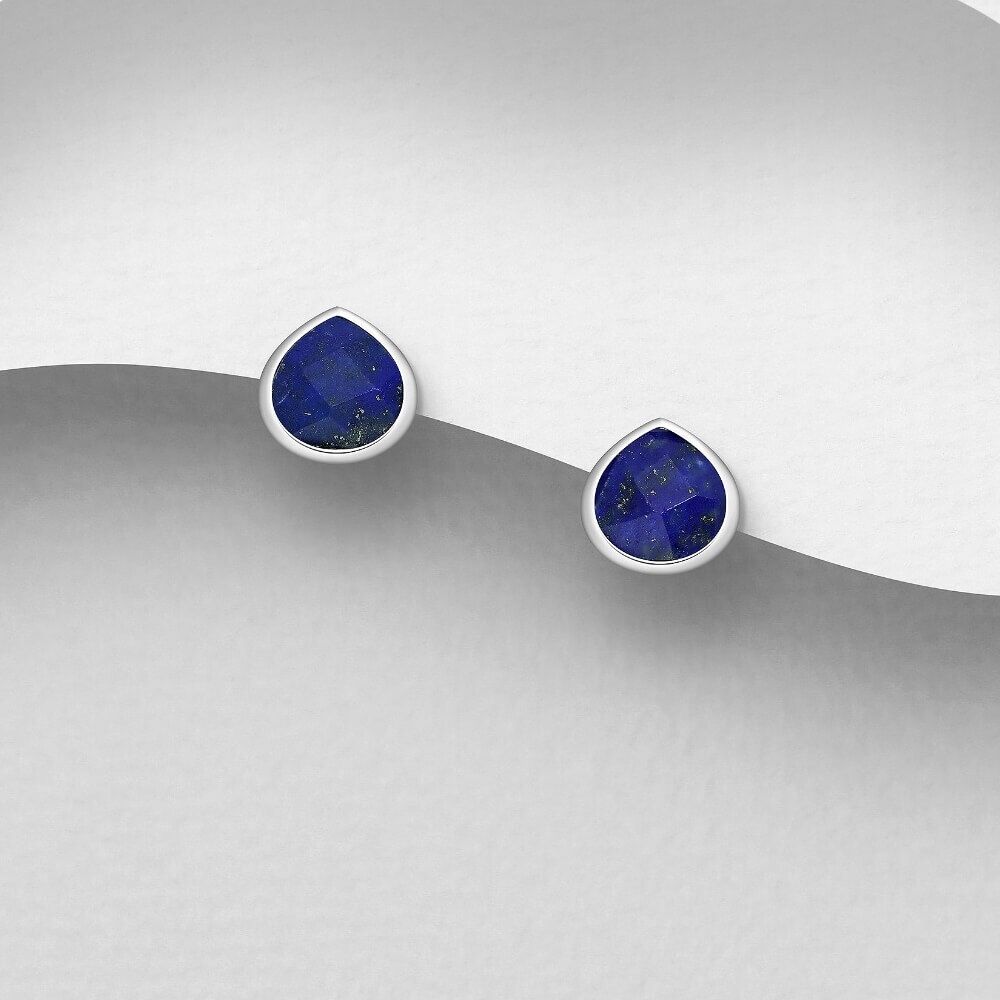 A beautiful pair of teardrop earrings with lapis, a regal blue stone with flecks of shimmery gold.