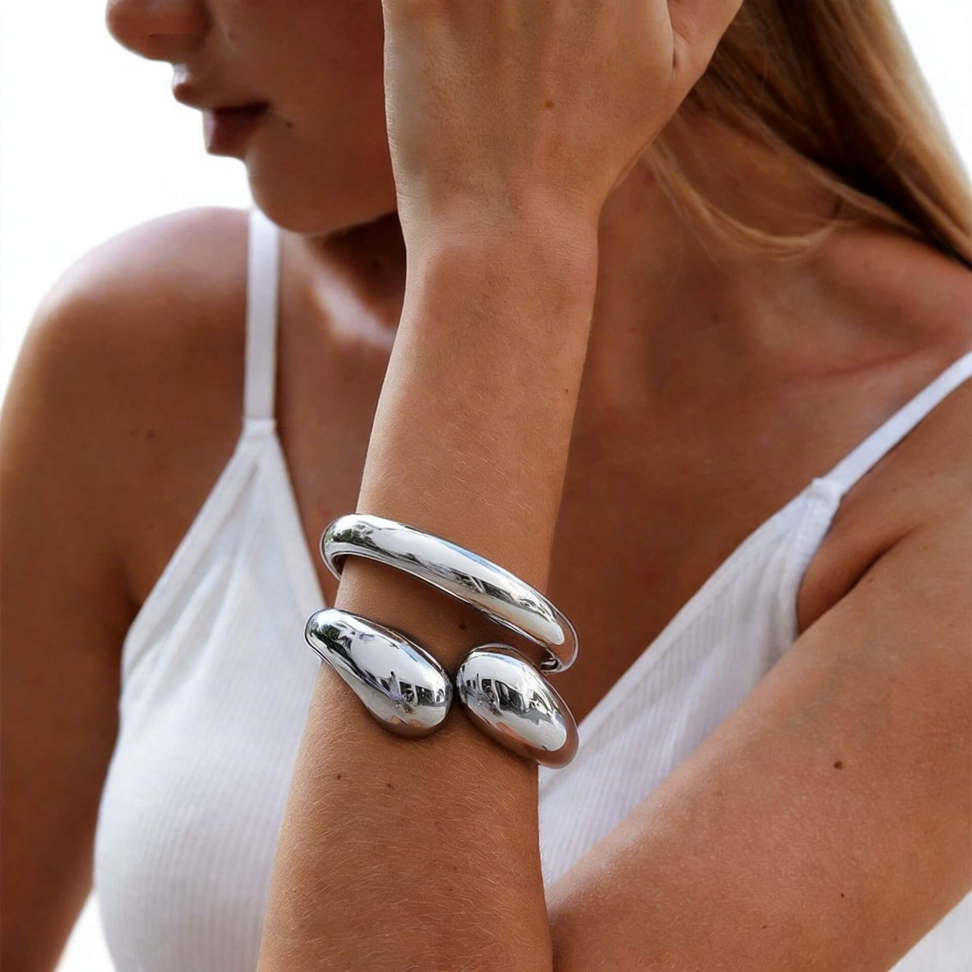 Chunky Bracelet in Stainless Steel with a shiny water design making it a beautiful accessory to complete any outfit. Designed for durability, all our stainless steel jewellery is water resistant and safe for the sea and swimming, remaining rust and tarnish free. A perfect choice for frequently worn jewellery that is subjected to daily wear and tear.