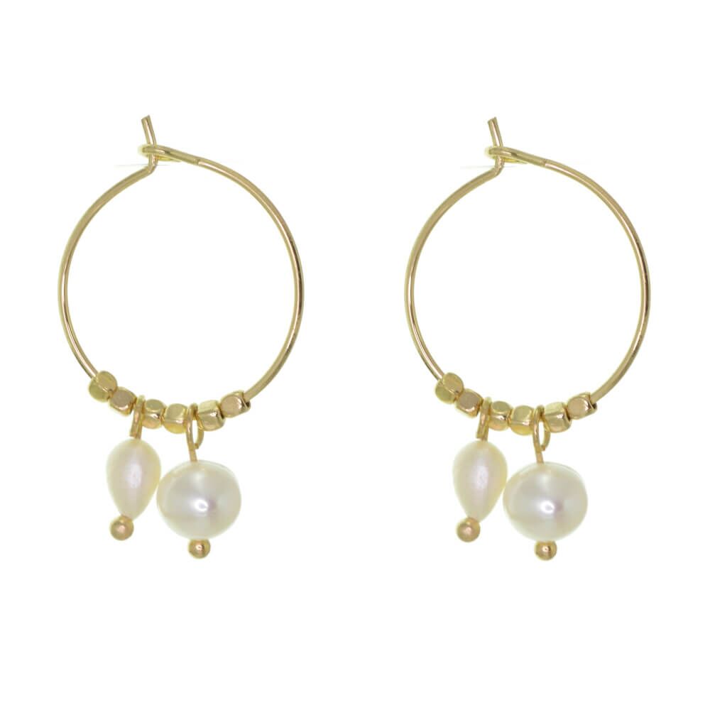 A gorgeous pair of medium sized hoop earrings with boho dangly charms.