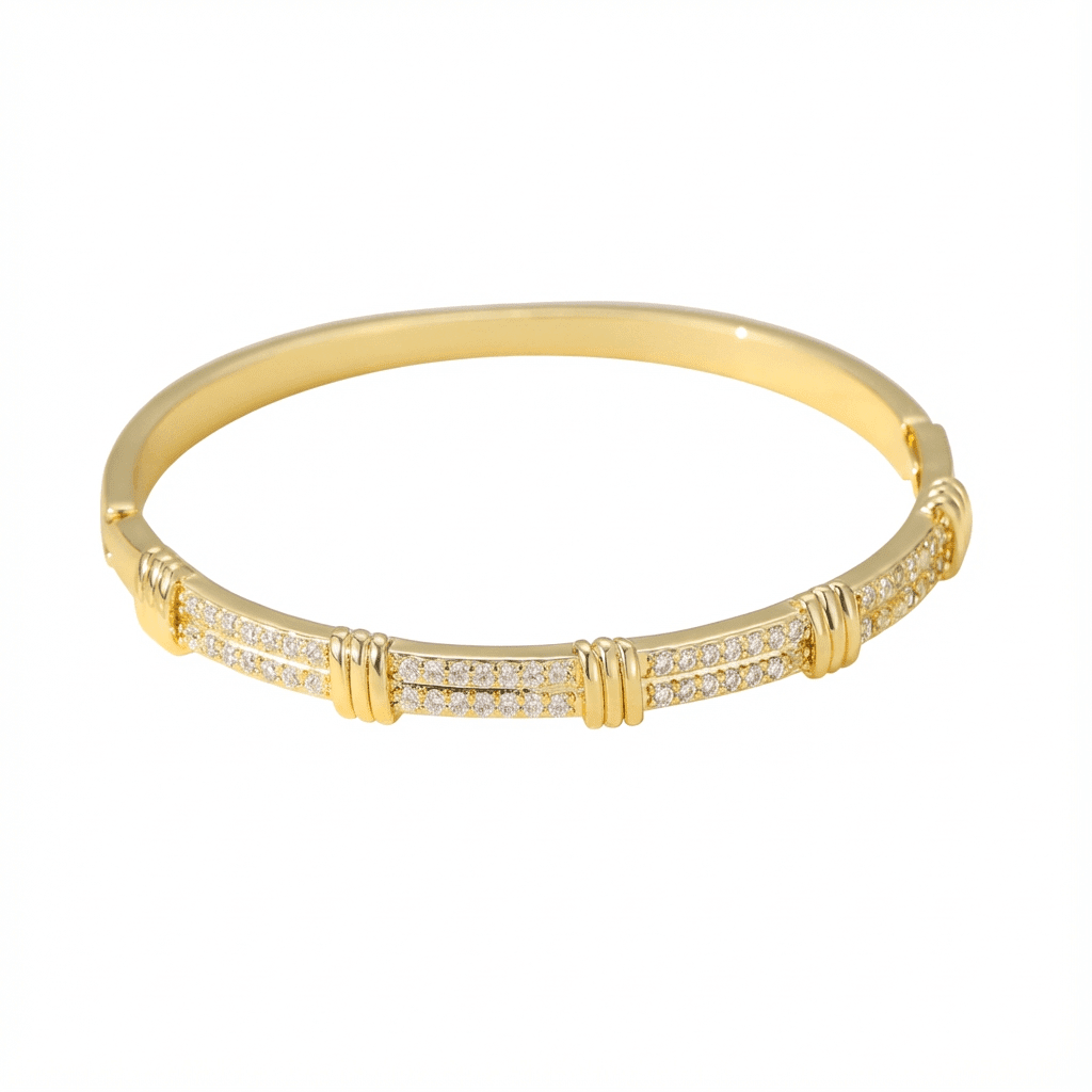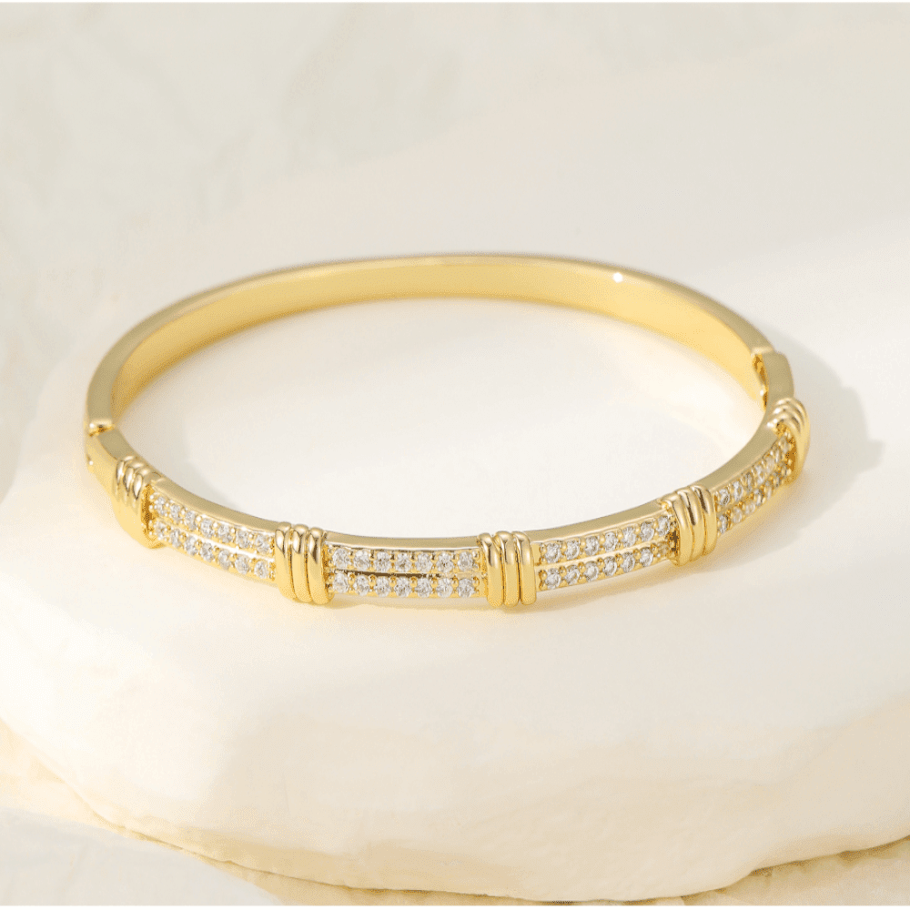 A lovely sparkly oval bangle with a modern design, augmented by clear crystals for subtle sparkle.