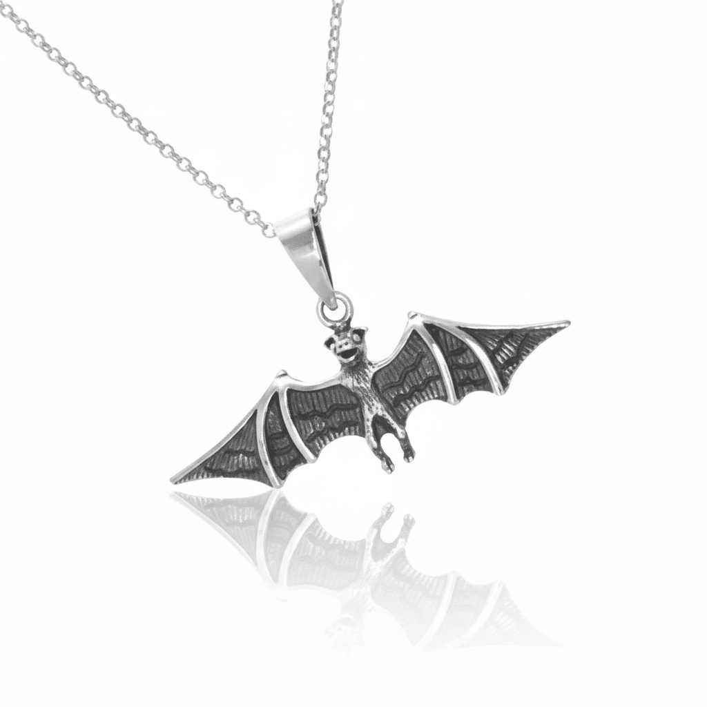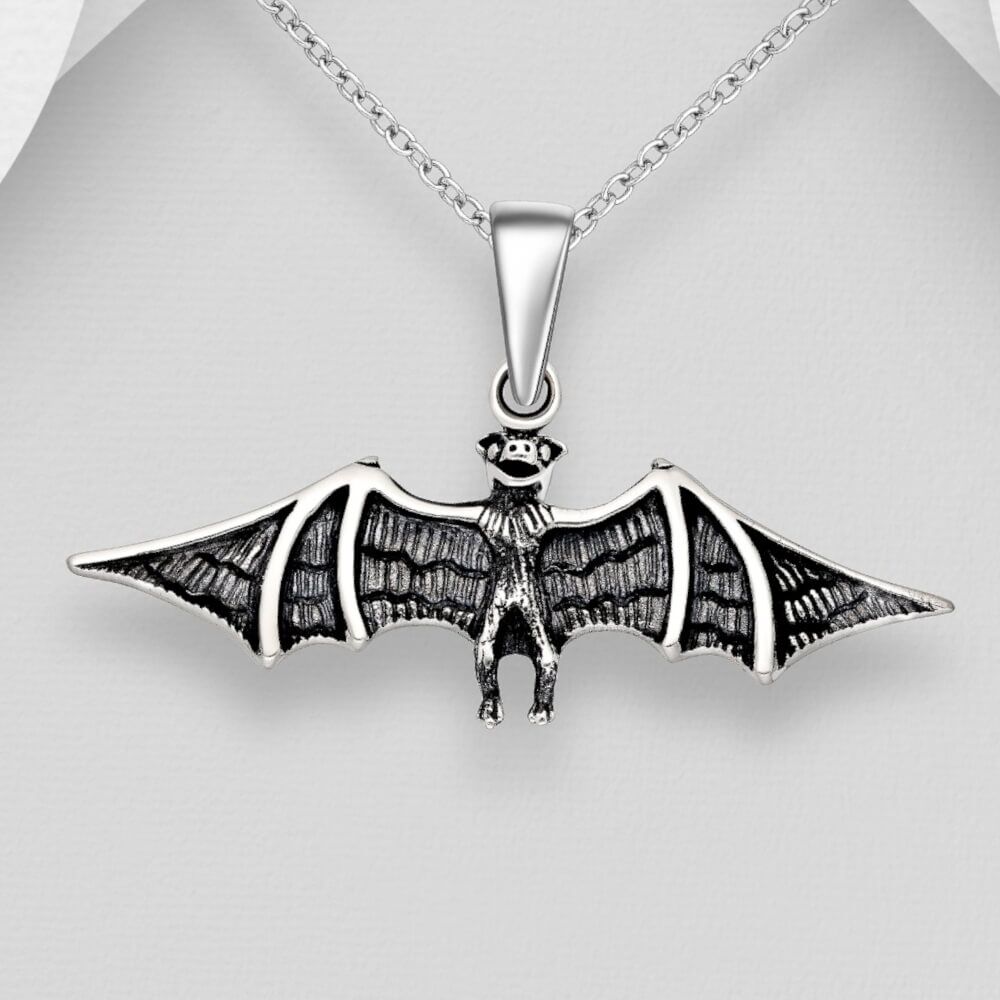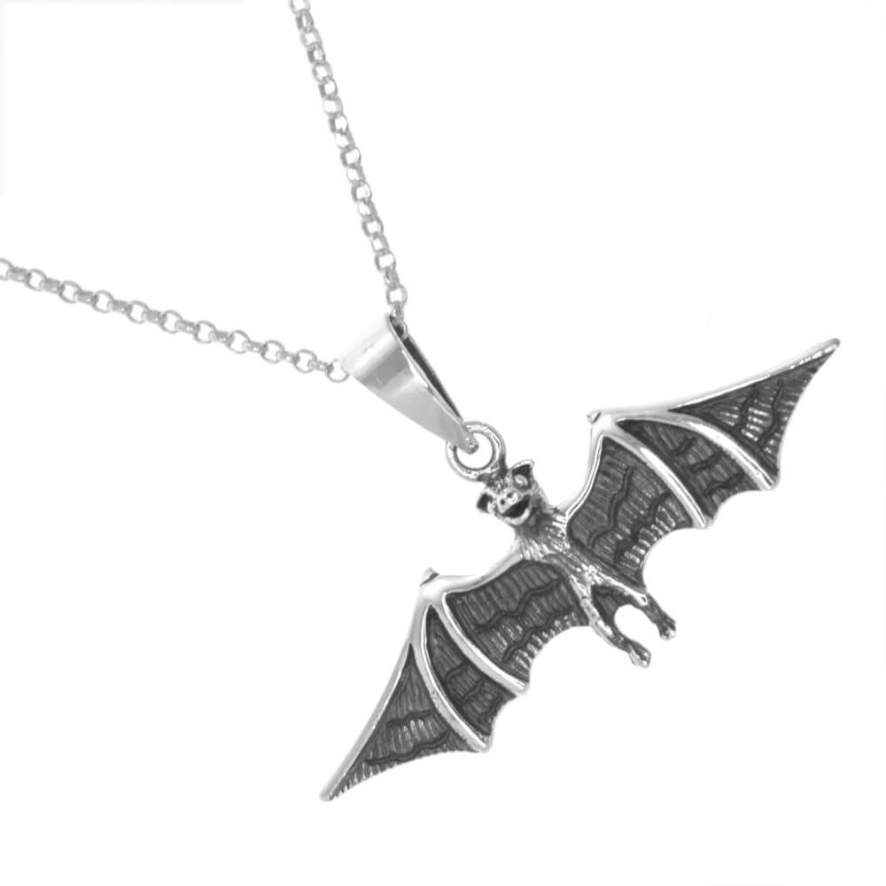 A striking large bat pendant perfect for goths and nocturnal folk! The bat is depicted with wings outspread.