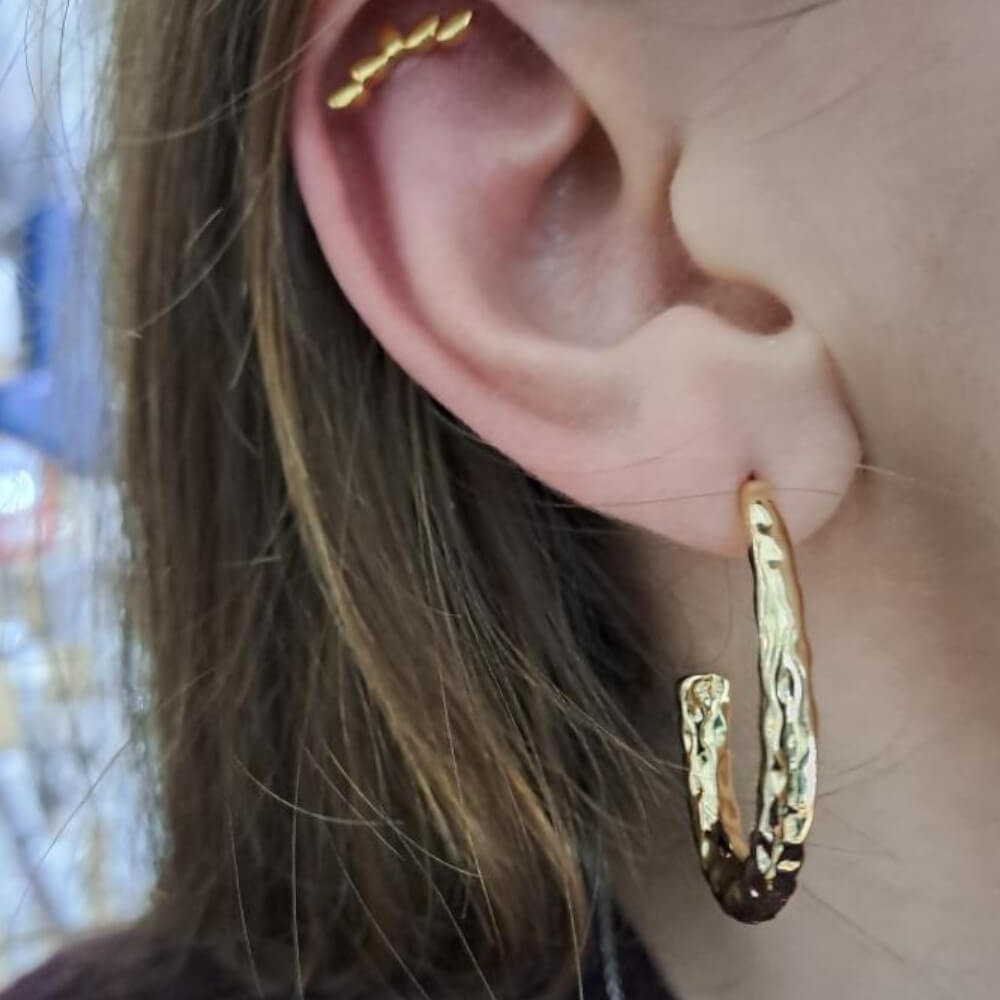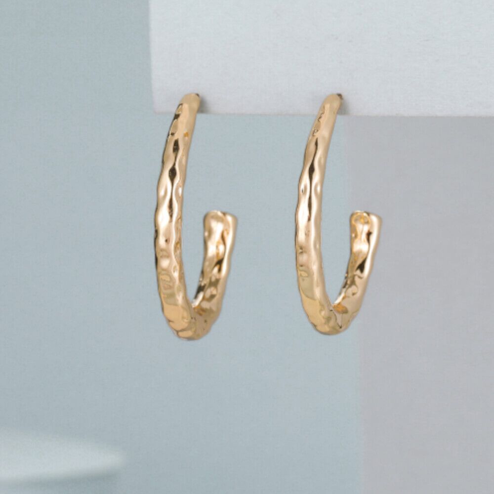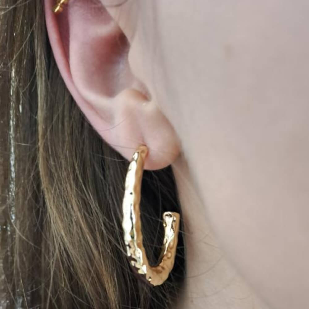 This stud fastening earring features a oval shape in a partiual hoop. Perfect for the look of a hooped earring but with the sturdiness of a stud!