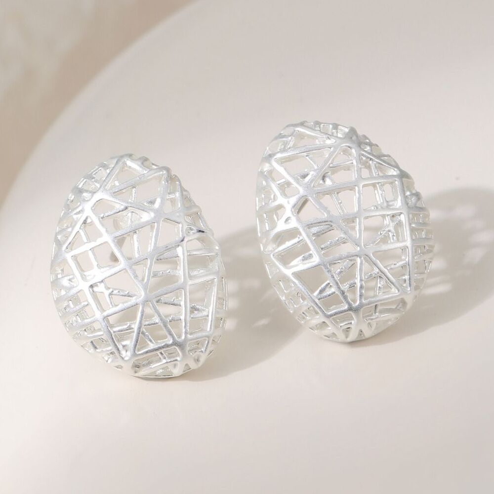 A stunning pair of earrings in an almost egg-shaped oval made from mesh filigree.