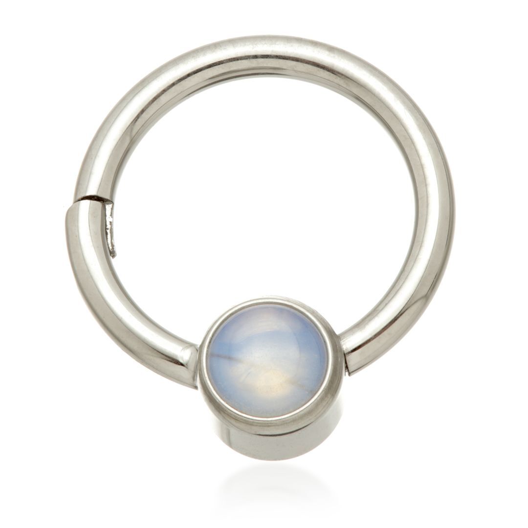 A stunning clicker ring in titanium with a gemstone disc. This piece looks especially good in the daith or septum!