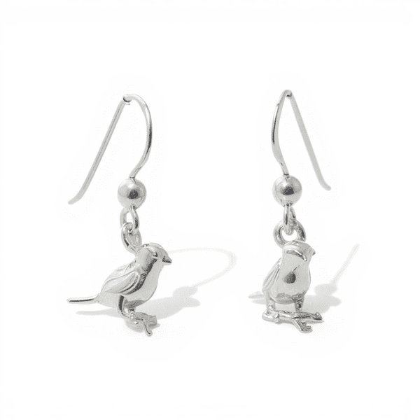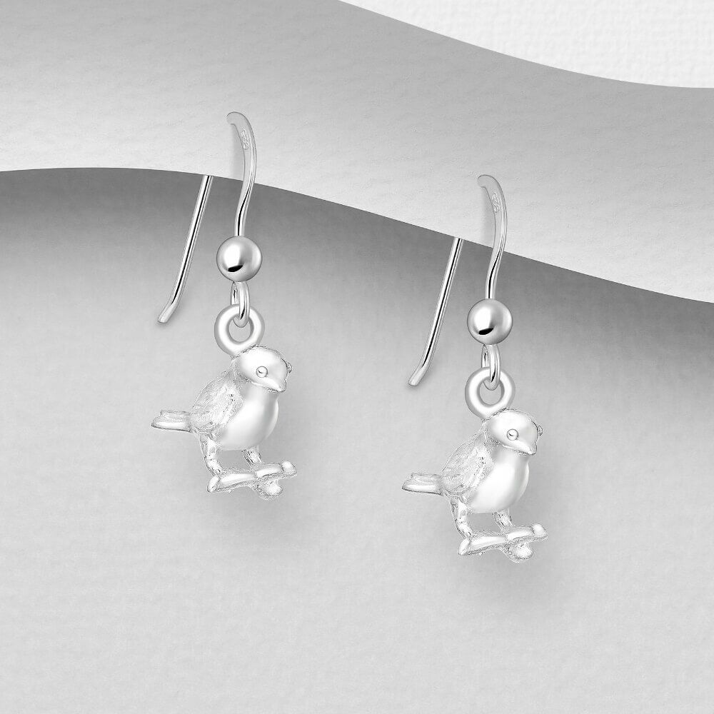 A pretty pair of textured bird shaped design earrings, depicting little songbirds perched on swings that dangle from your ear lobes.