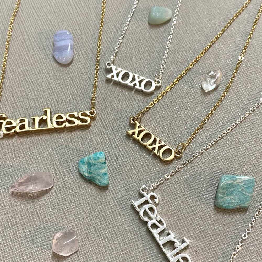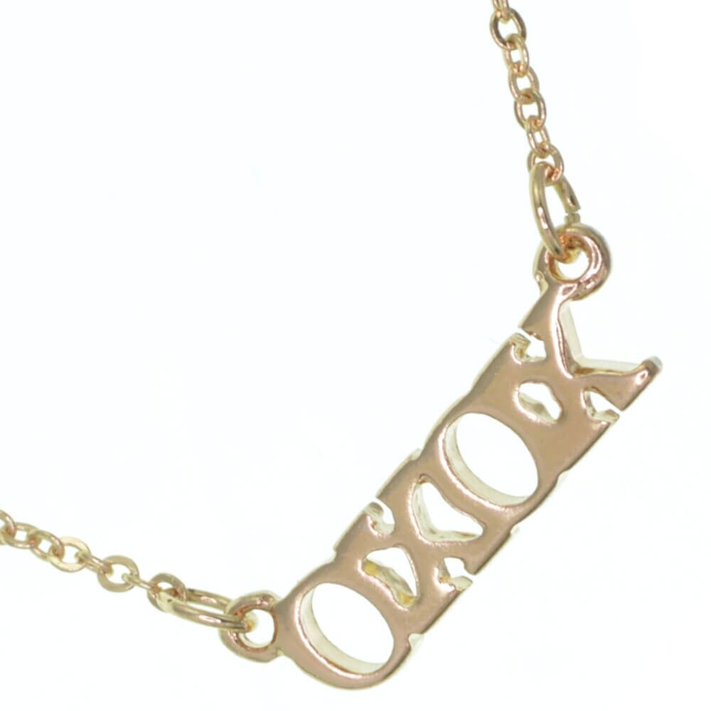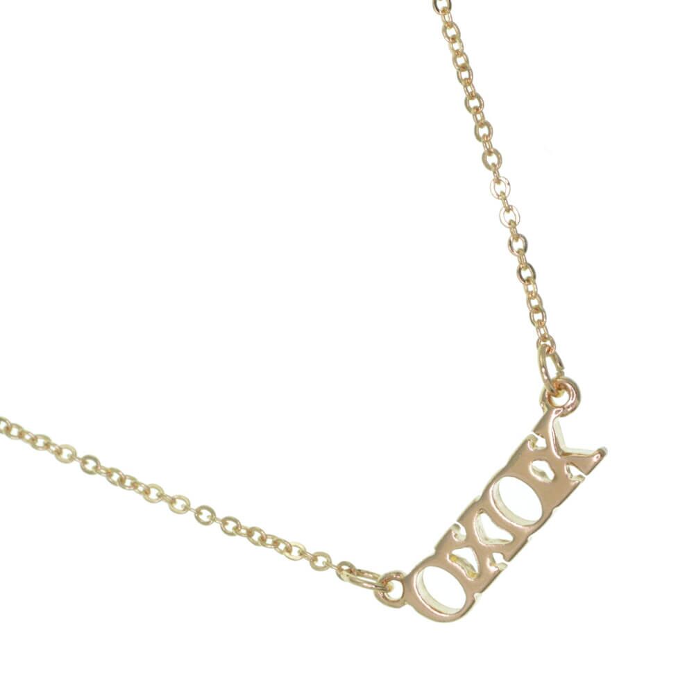 A pretty and simple minimalist chain necklcae with a pendant that reads XOXO.