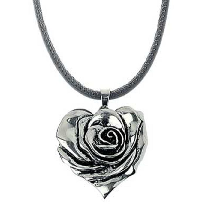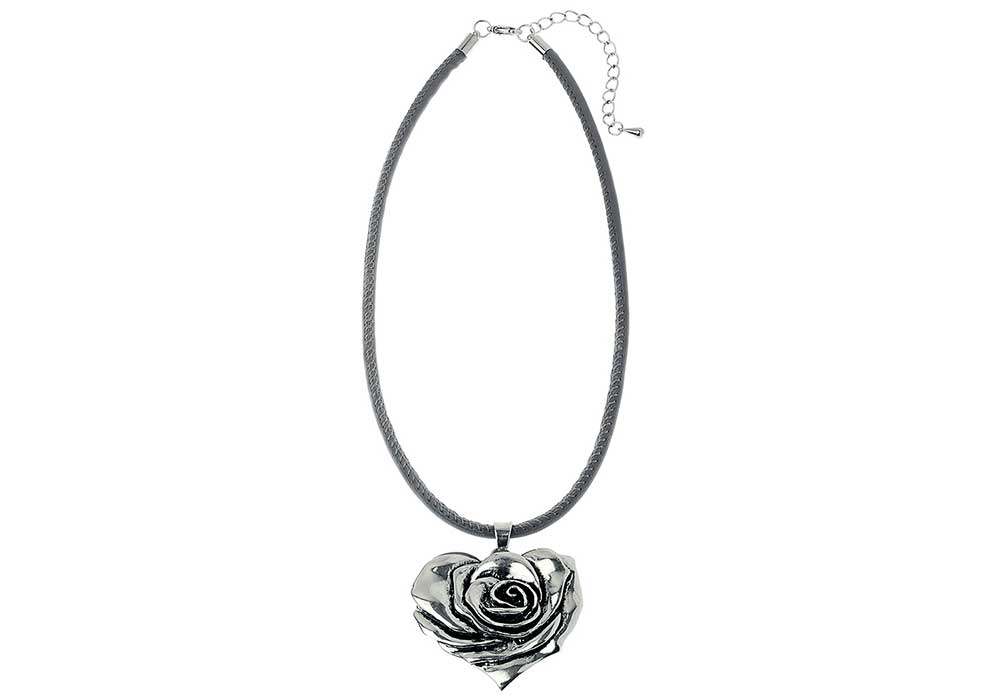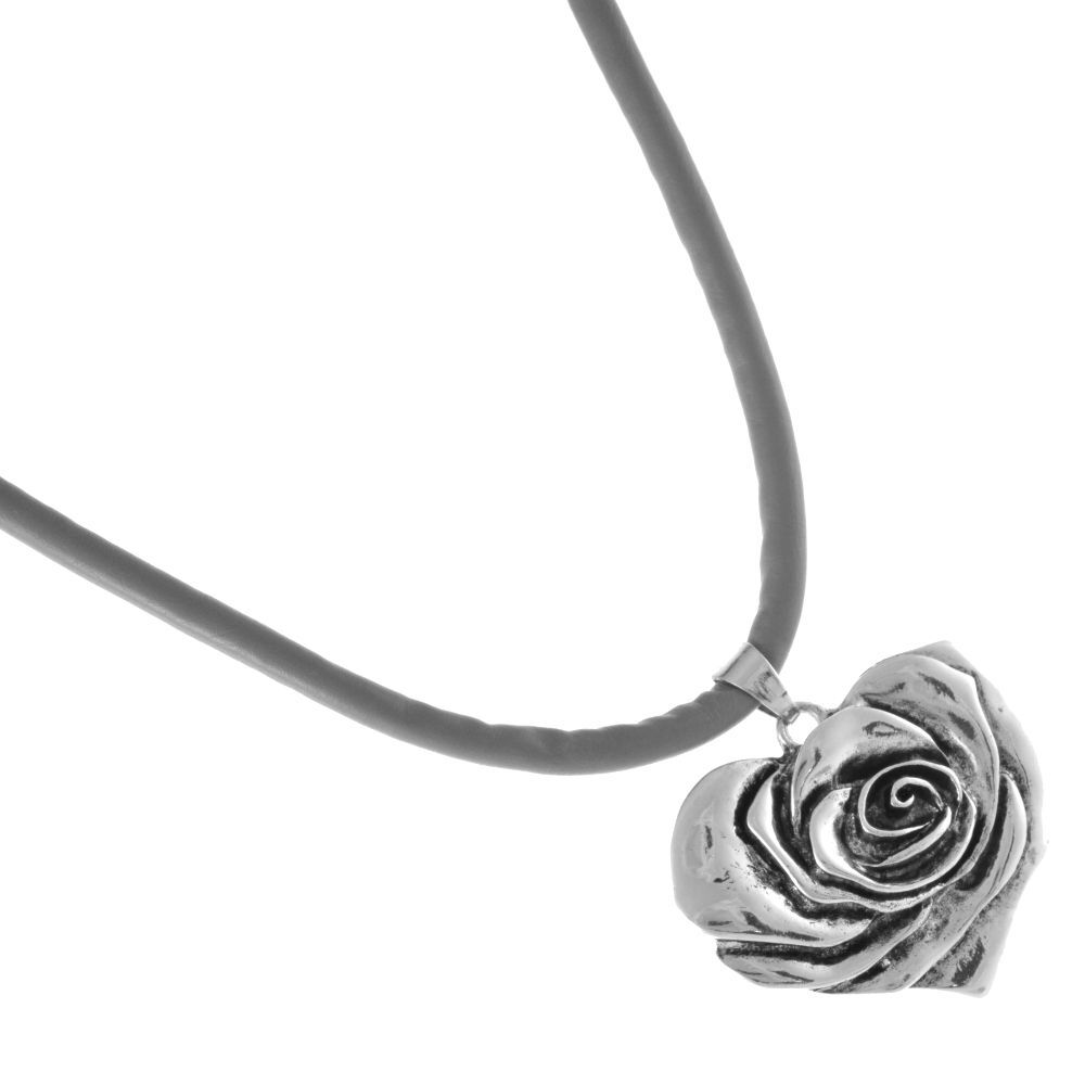 -25%Grey Cord Necklace with Rose Heart