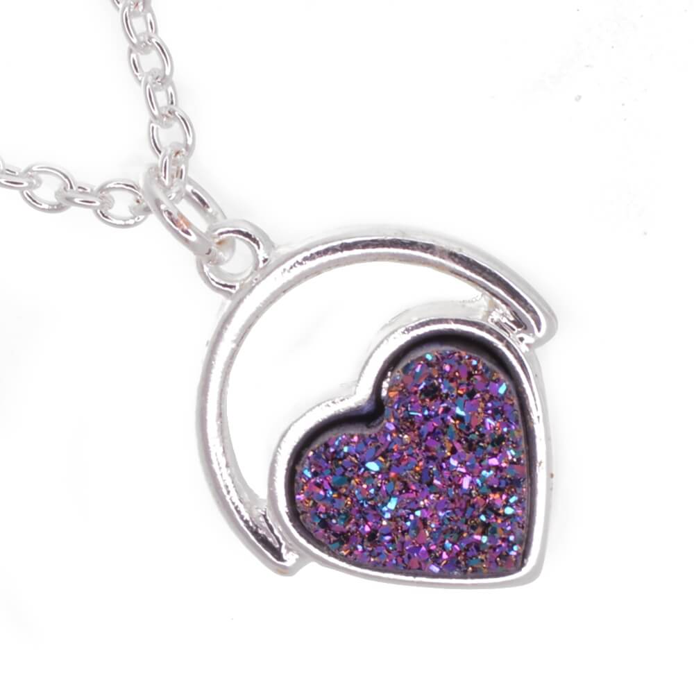 A really pretty pendant with a dark purple heart with druzy feature. Druzy is a type of crystal that forms in a distinctive style.