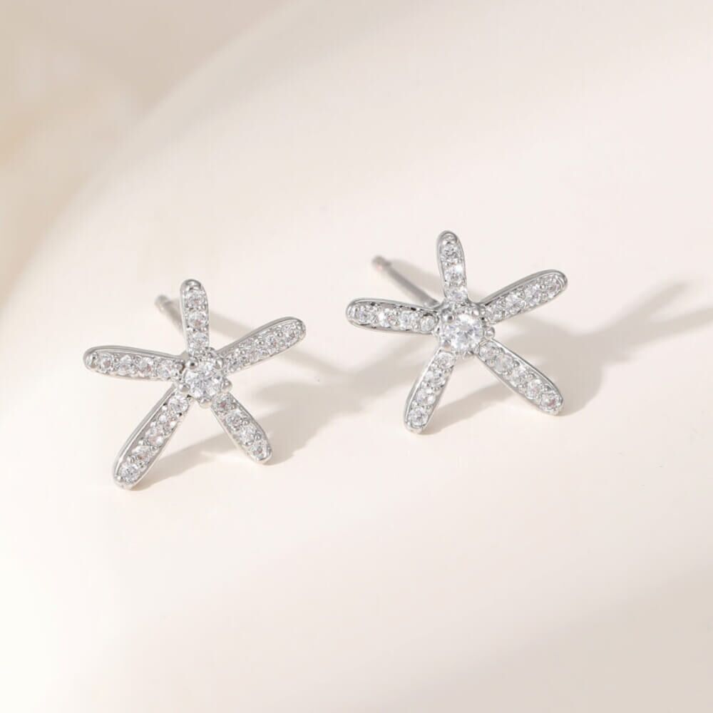 A beautiful pair of crystal earrings with long skinny sparkly petals with cubic zirconia stones.