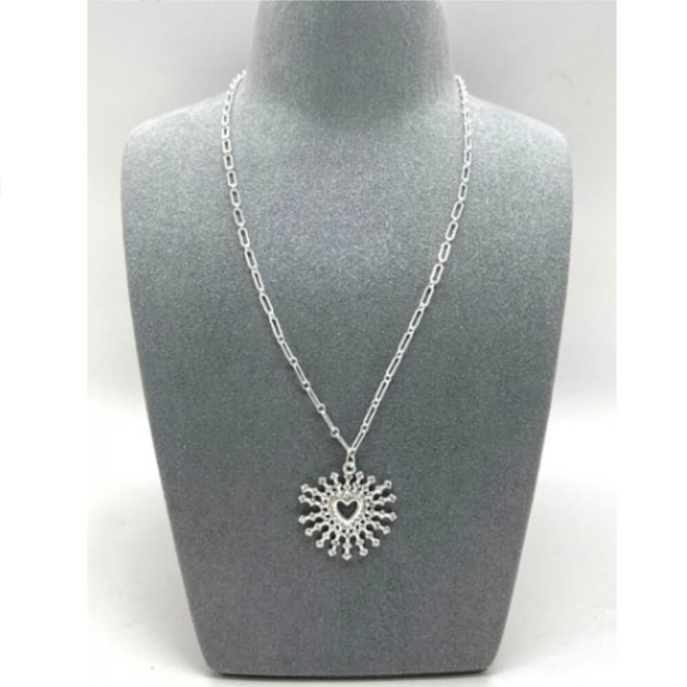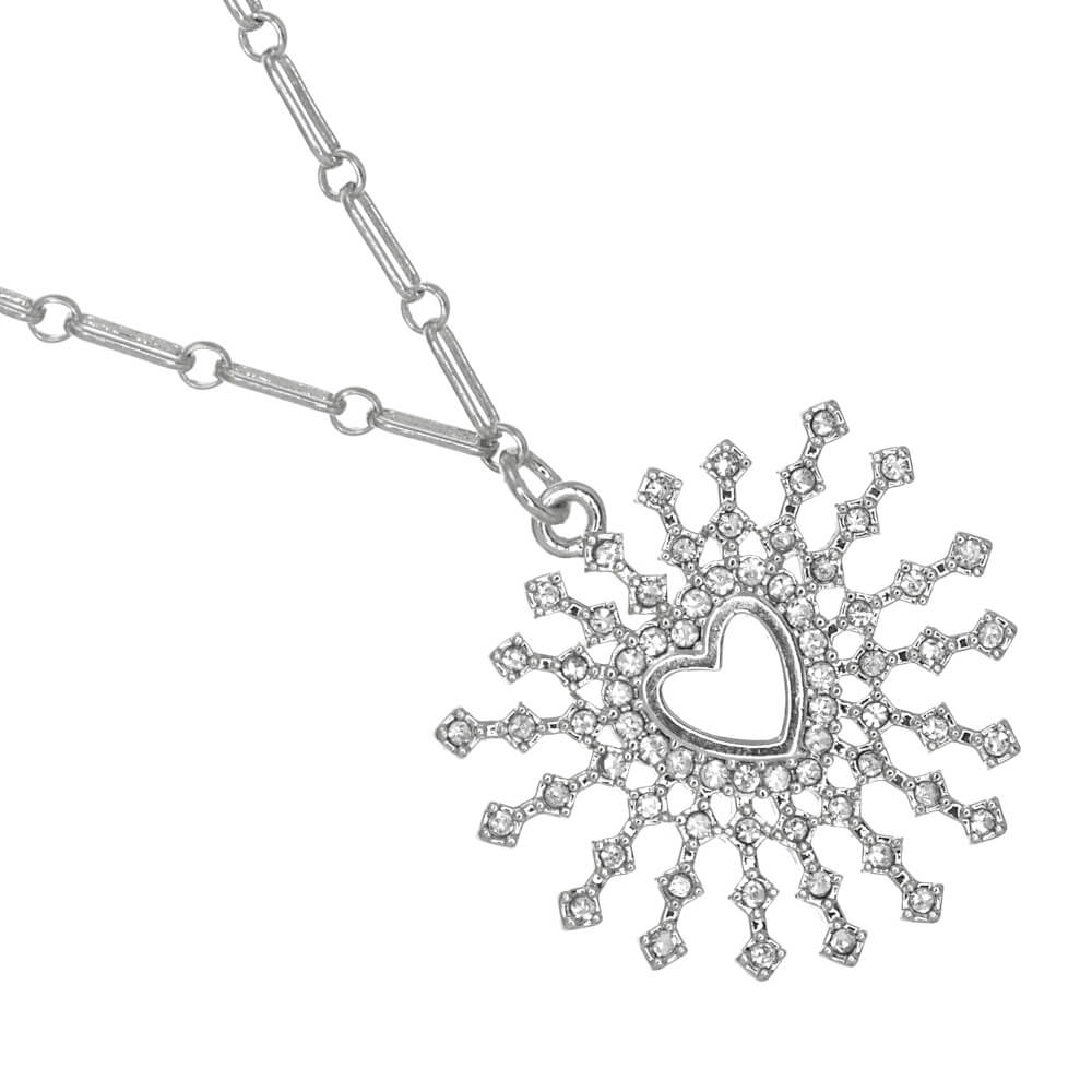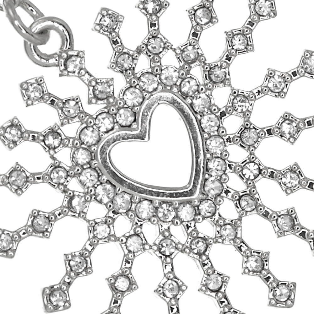 This fabulous pendant is studded with tiny sparkly gems all over the heart design. The heart has rays striking out from the sides for a really impactful loo.