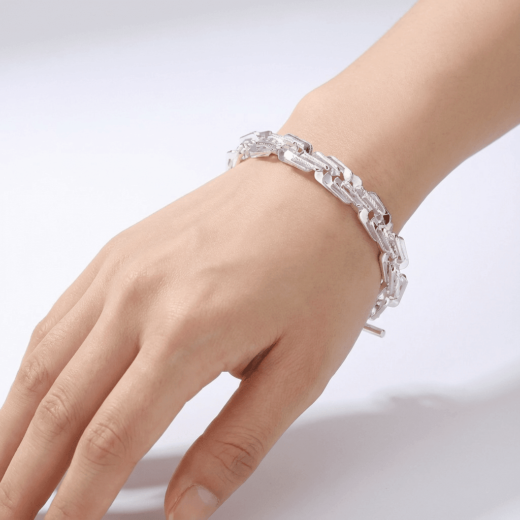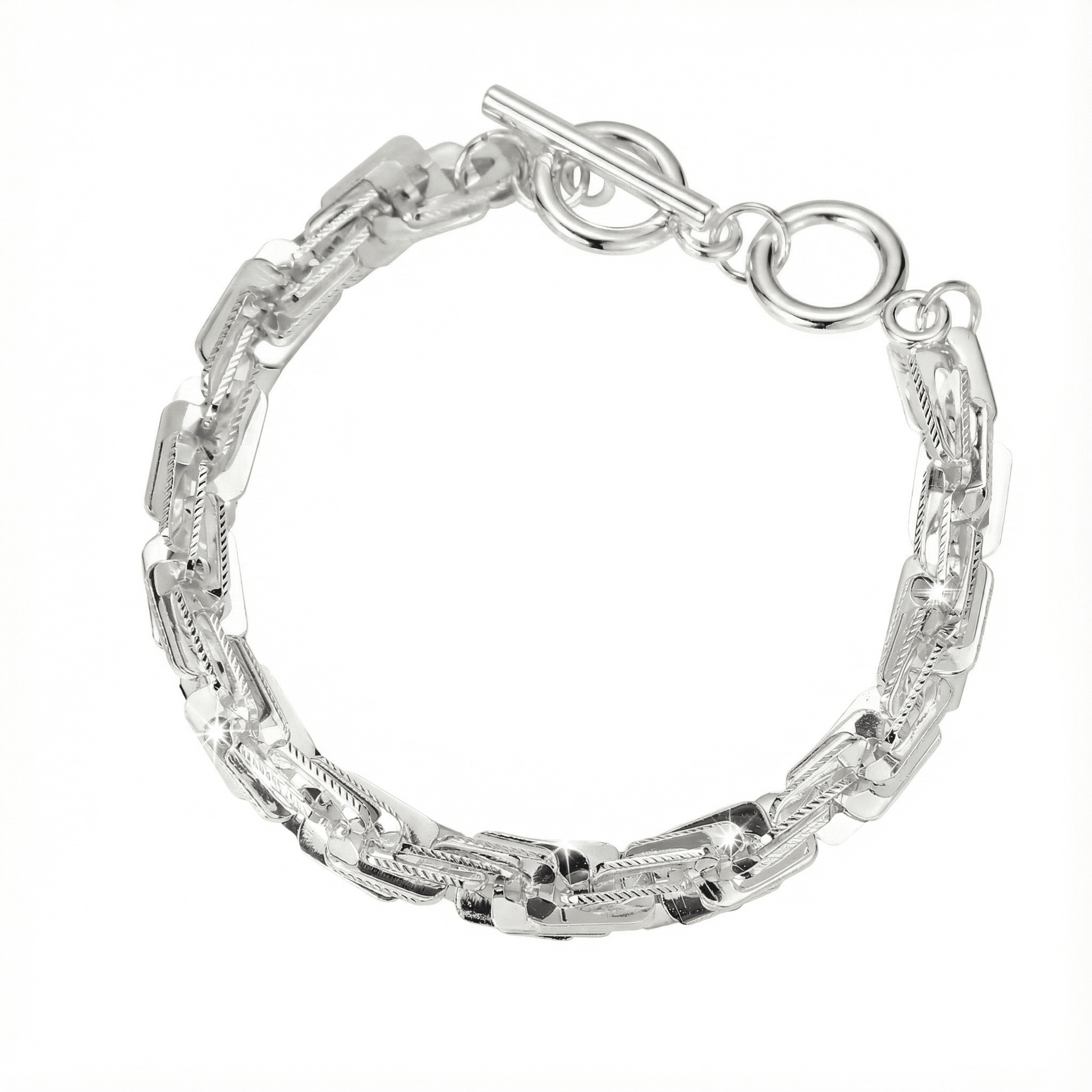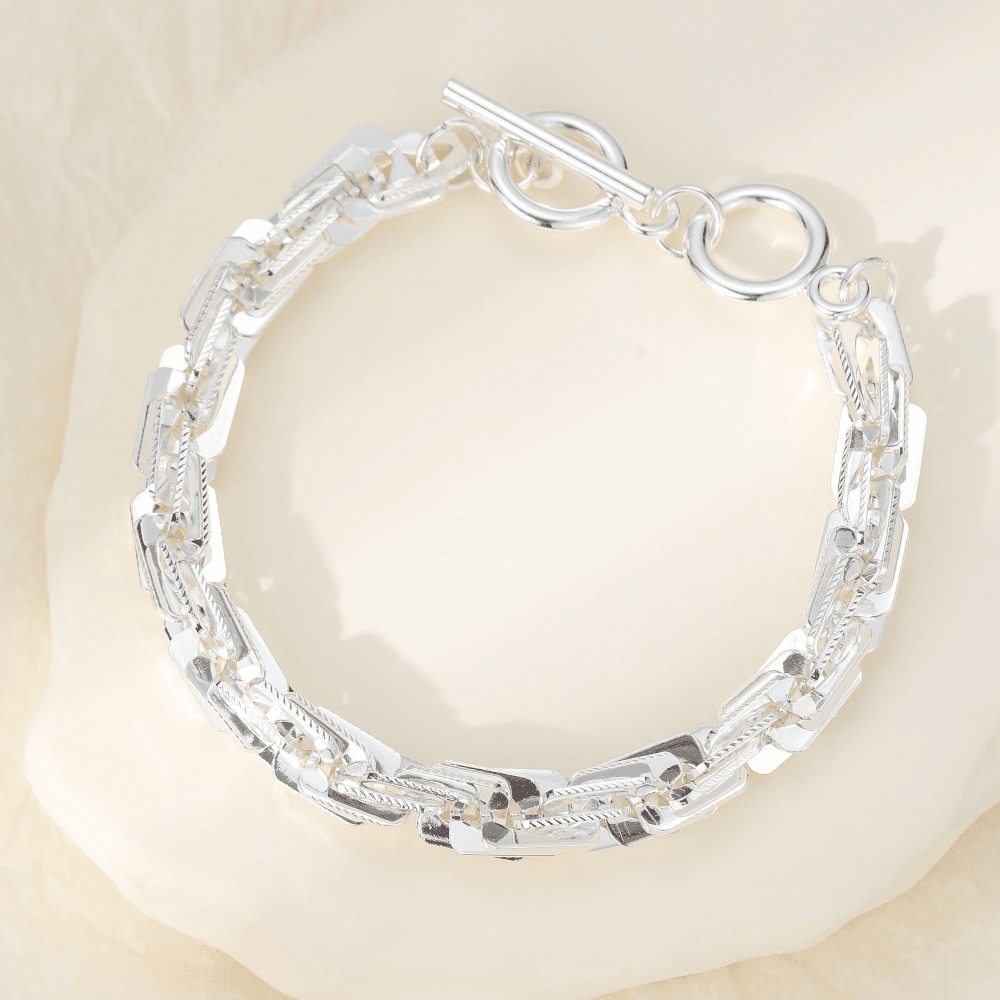 This is an elegant bracelet with a simple twisted chain design running around the whole length.