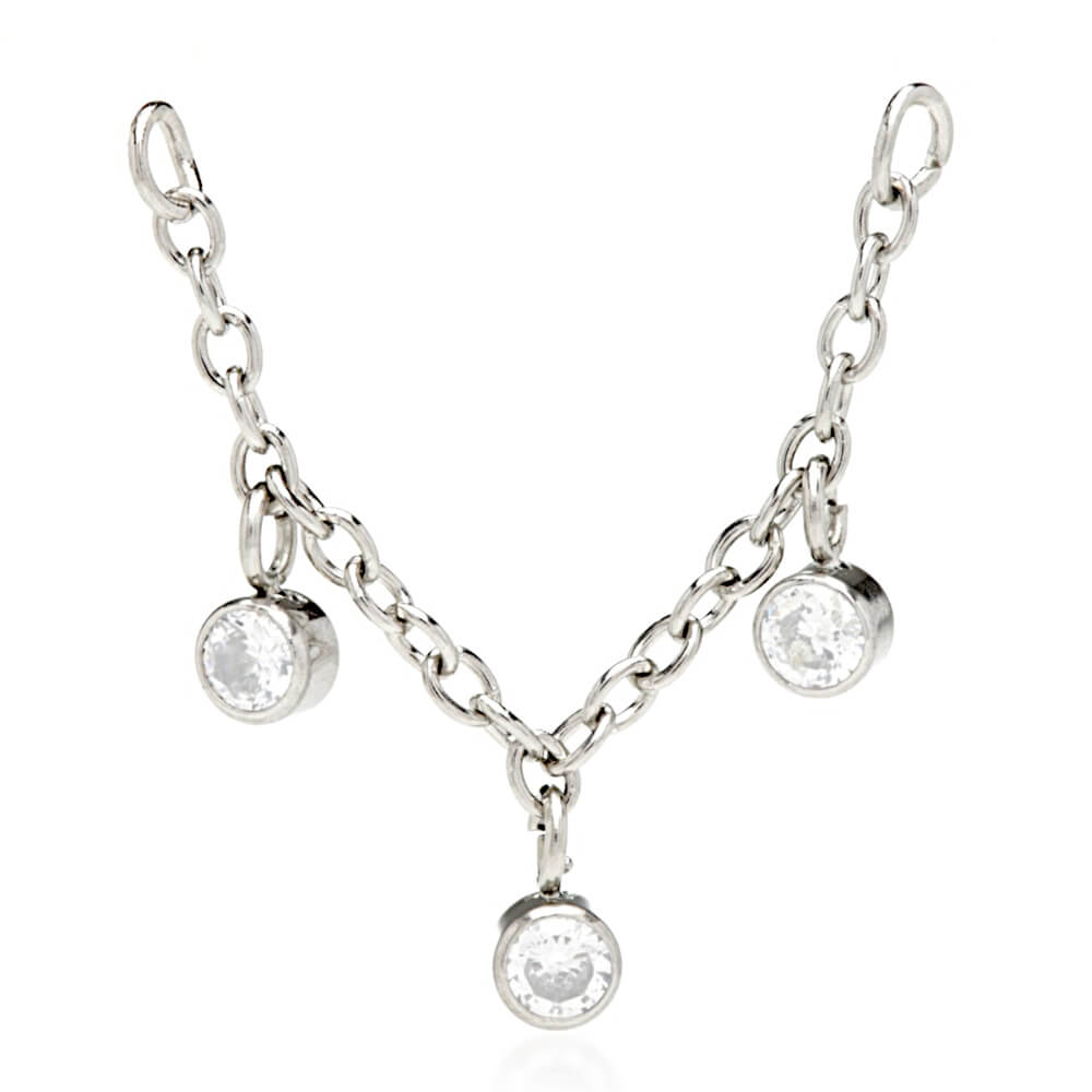 A beautiful single chain with crystal gems for adding an extra unique touch to your ear stack. These chains can be worn around a conch or helix or to connect the fronts of two earrings.