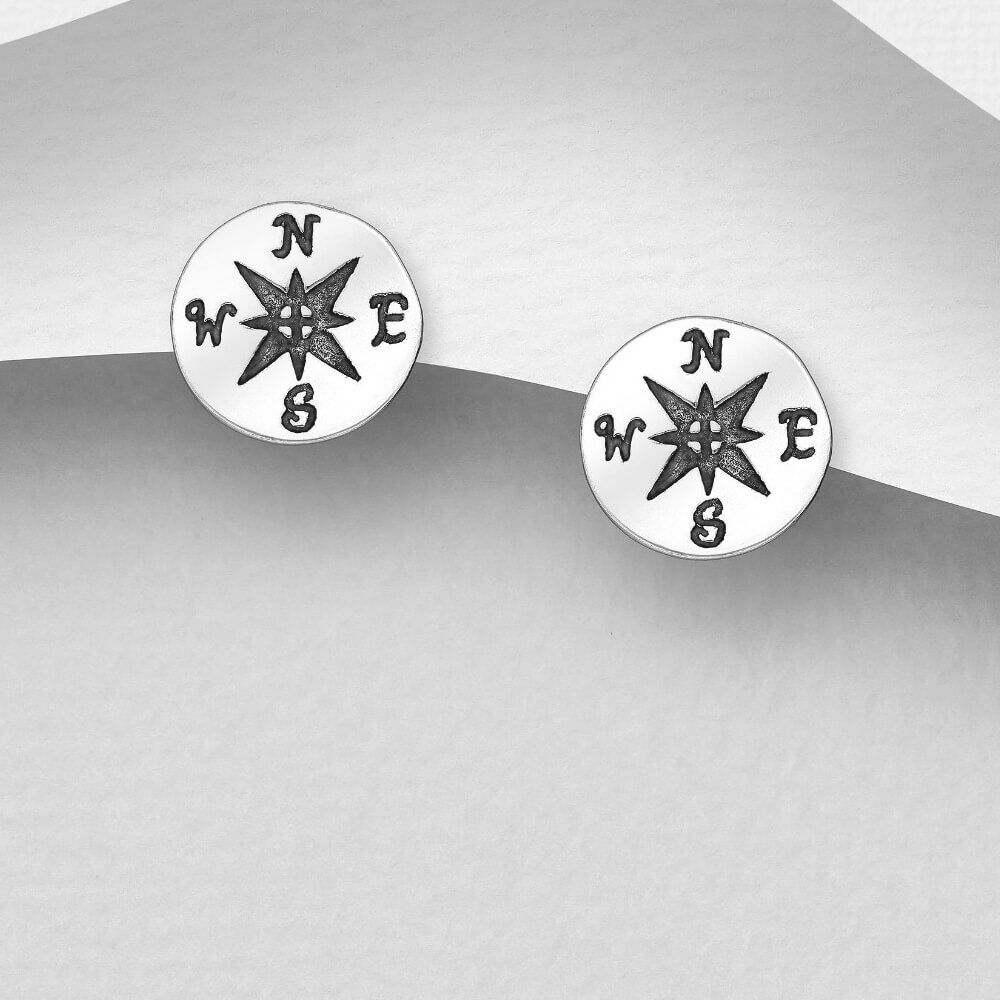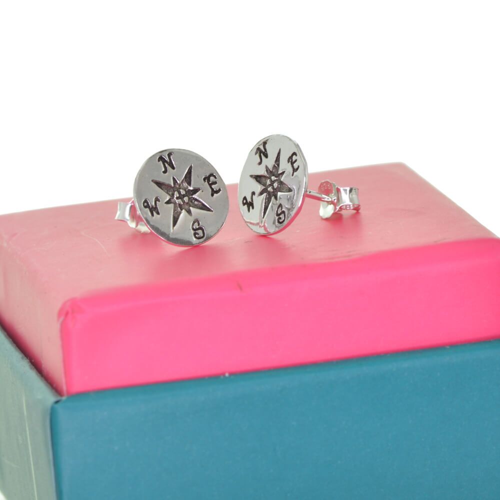 A simple pair of nautical direction stud earrings ideal for anyone going on a journey or who loves travel.