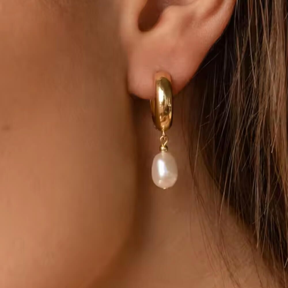 An ever green stylish pair of pearl hoop earrings.