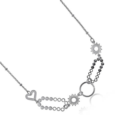 This elegant stainless steel necklace features various unique charms. All our stainless steel jewellery is water resistant and safe for the sea and swimming, remaining rust and tarnish free. A perfect choice for frequently worn jewellery that is subjected to daily wear and tear. —making it a beautiful accessory to complete any outfit. Designed for durability, all our stainless steel jewellery is water resistant and safe for the sea and swimming, remaining rust and tarnish free. A perfect choice for frequently worn jewellery that is subjected to daily wear and tear.