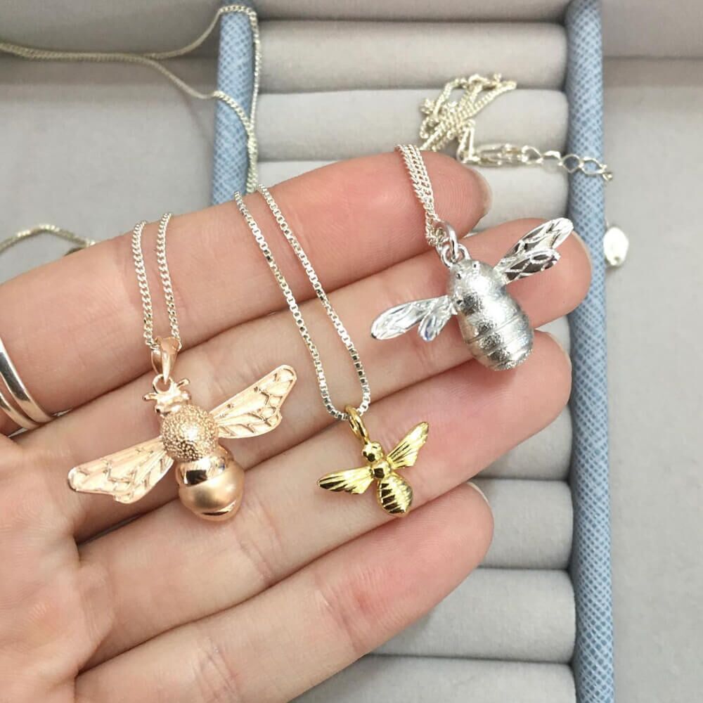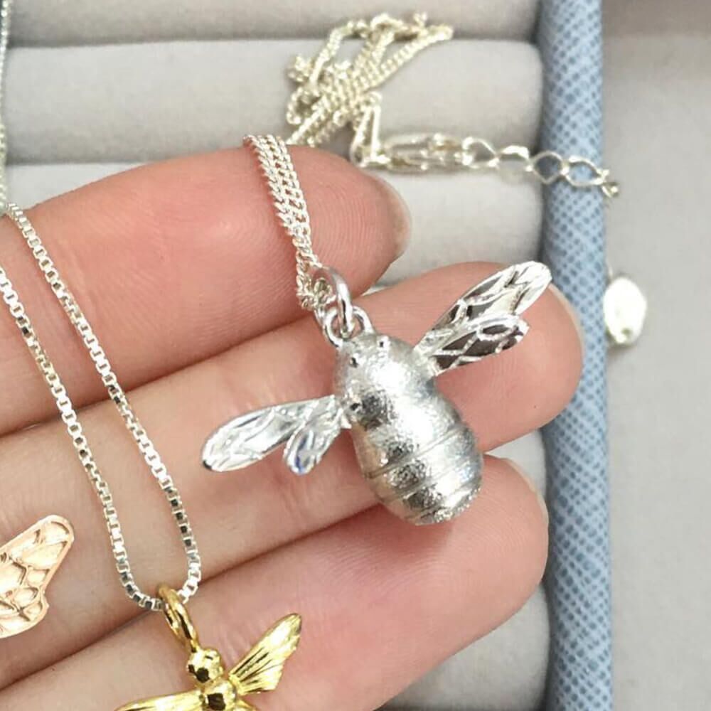 Bumblebees make a cute and whimsical jewellery design, and are perfect for busy bees who are always on the go! This bee has a matt and shiny striped body and shiny wings.