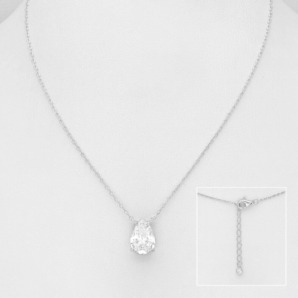 A simple and dainty pendant with a tear cubic zirconia gemstone.