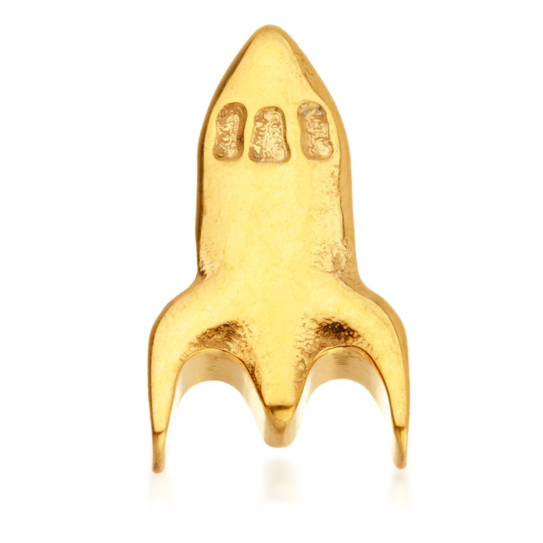A beautiful labret stem with a silver tone titanium base. The whimsical rocket design front will delight you and everyone you see!
