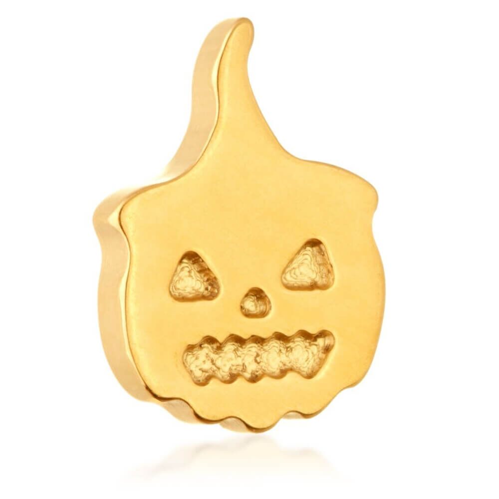 A beautiful silver tone labret stem with a flat star shaped base. The whimsical pumpkin design front is perfect for lovers of spooky and halloween themed jewellery!