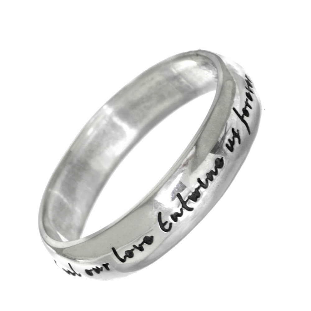 Shaespeare quote from Romeo and Juliet. The Inscription reads: “Ring of love, bind us together. Seal our love, entwine us forever”