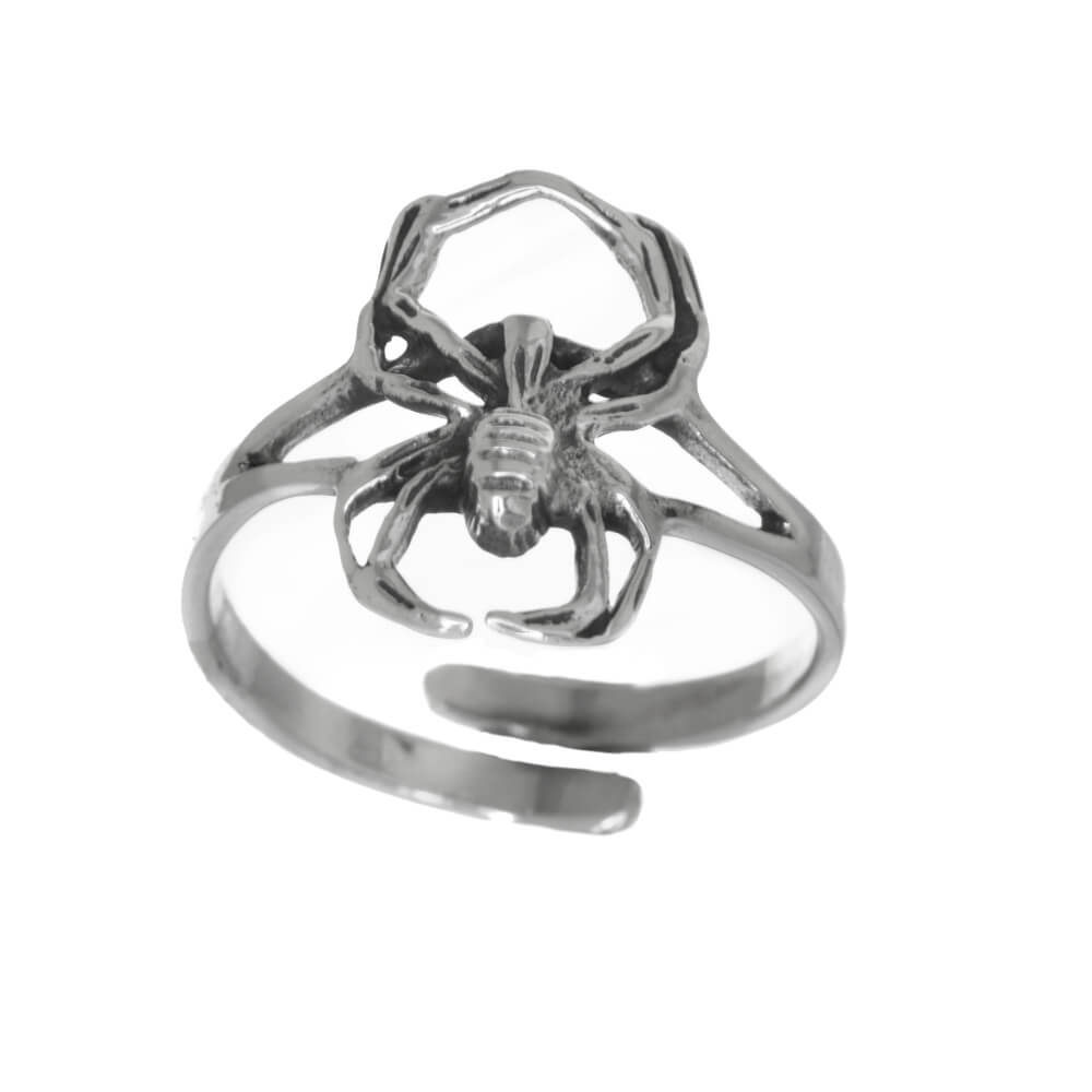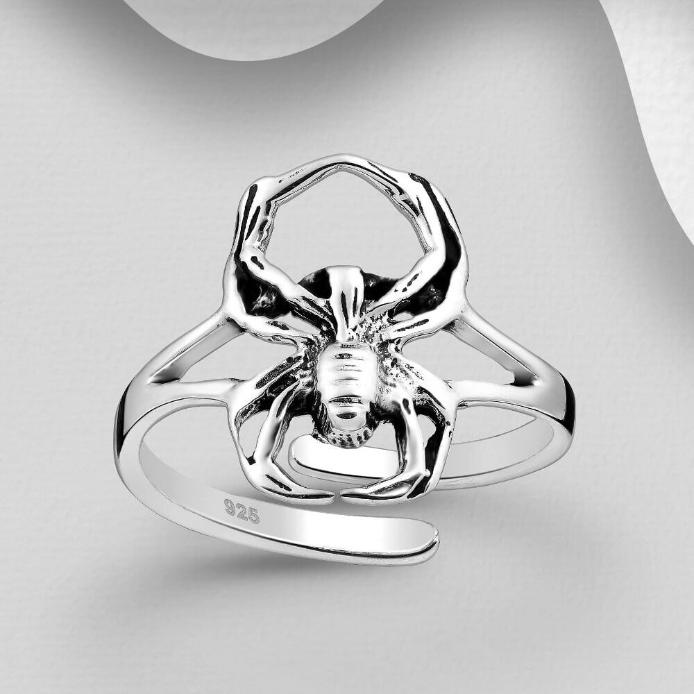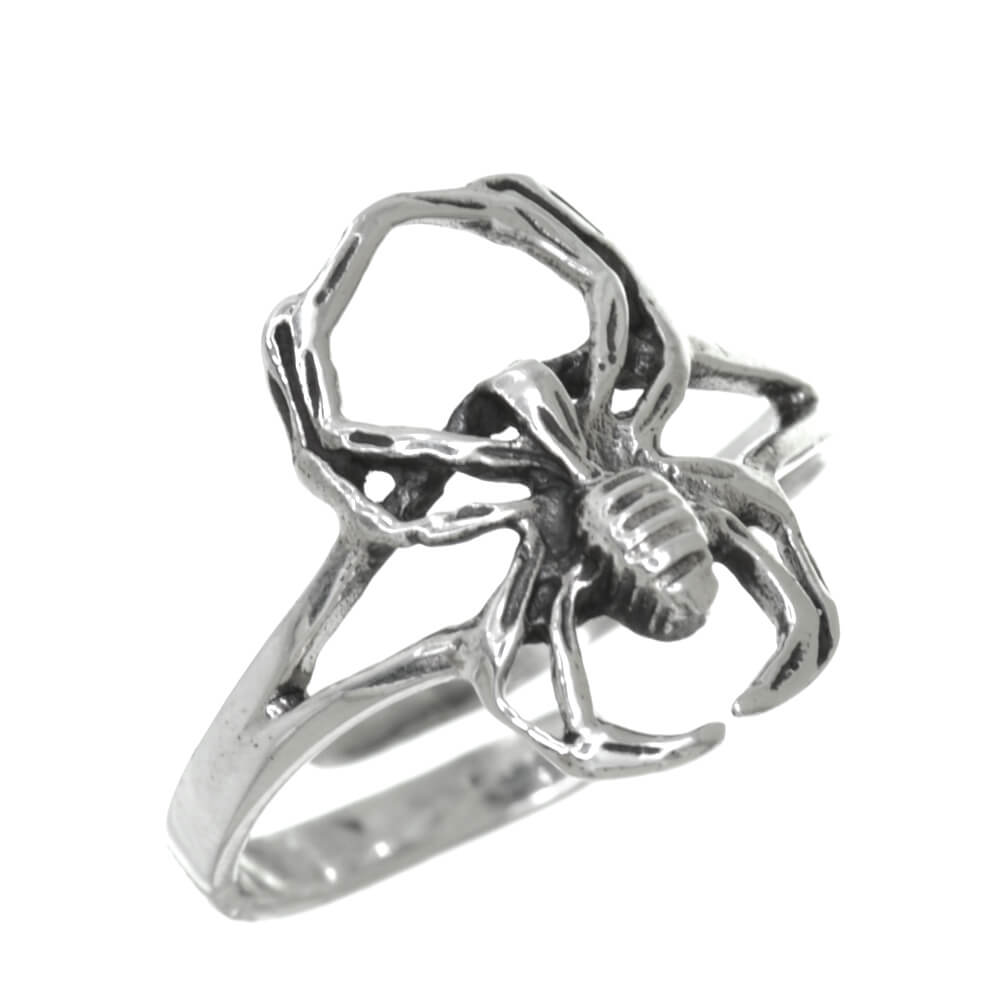 A fabulous ring with a striking gothic spider design with a darkened oxidised finish.